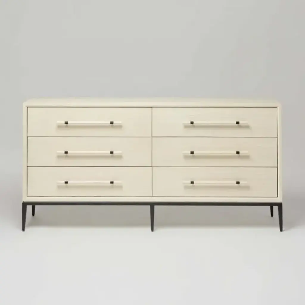 A cool parchment finish makes the ash Burton 6 Drawer Chest a light, fresh and versatile storage option. This item is made of solid wood. Item will not be exactly as pictured, subtle deviations in hue after finishing can be expected as a result of natural variations in coloration of the base material.
