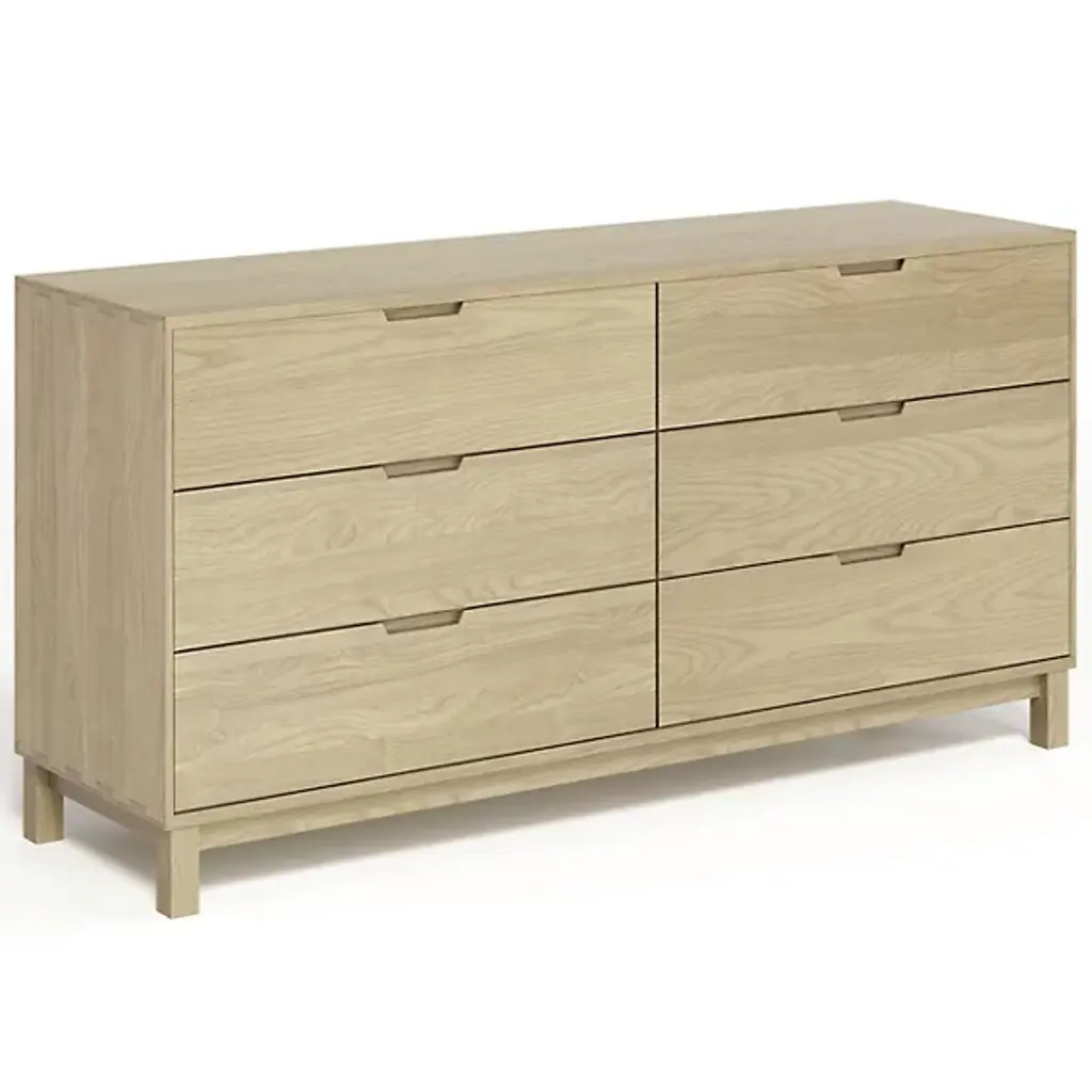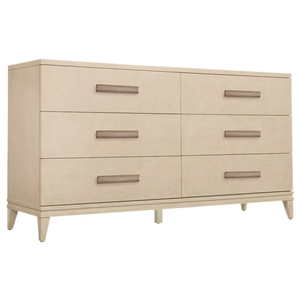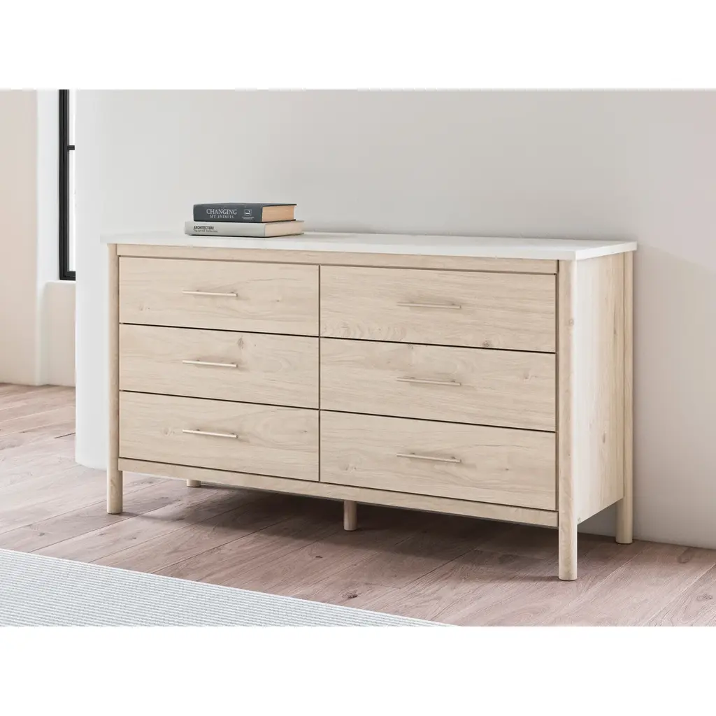 A casual contemporary design with a smooth, light finish and white marble top. 6 Drawers feature smooth side roller glides and champagne colored finished handles. - Product Details provided by Manufacturer, Slumberland not responsible for errors in information.