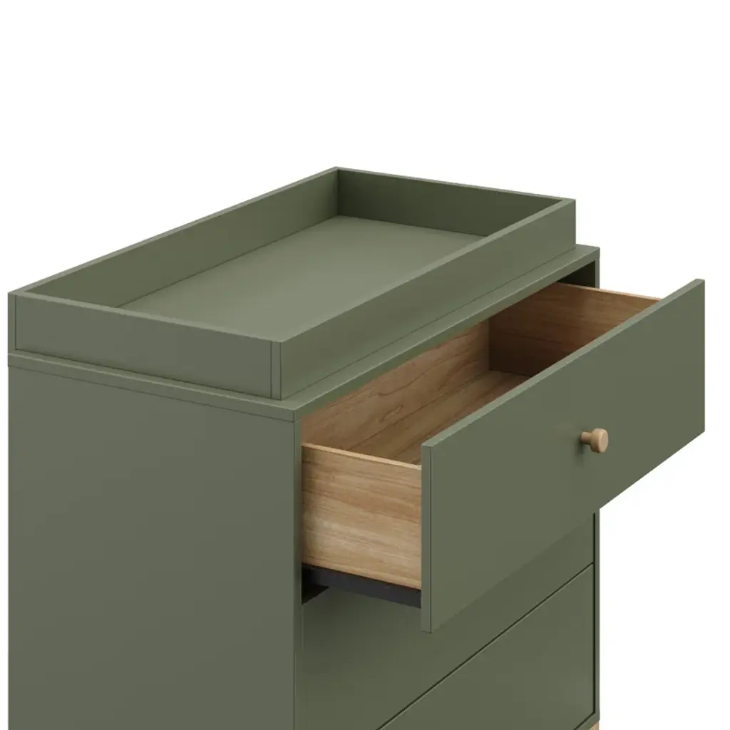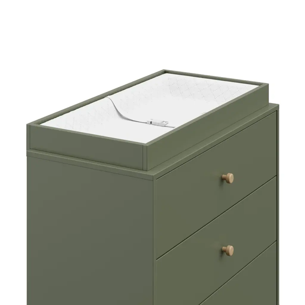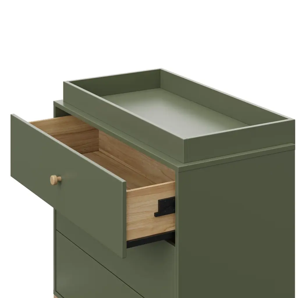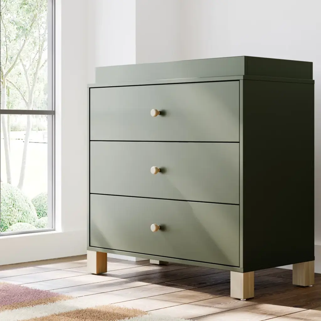 Introducing the Storkcraft California 3-Drawer Chest with Topper – the latest addition to our stylish signature Storkcraft California collection. This modern, minimalist chest is designed to complement any nursery or kids' bedroom with its clean lines, stylish block feet, and spacious drawers. Its sleek look ensures it blends seamlessly with a variety of décor styles, adding both charm and functionality. The California Chest features three roomy drawers for organizing essentials and comes with a removable changing topper that fits any standard-size baby changing pad (not included). Once your child outgrows the nursery stage, simply remove the topper, and it transitions into a modern 3-drawer chest that suits any room in your home, offering longevity and versatility far beyond the early years. For easy assembly, we’ve pre-installed the drawer tracks, ensuring a smooth, hassle-free, easy assembly experience. The innovative interlocking drawer system adds extra safety by allowing only one drawer to open at a time, minimizing the risk of tip-over when paired with the included furniture restraint kit.