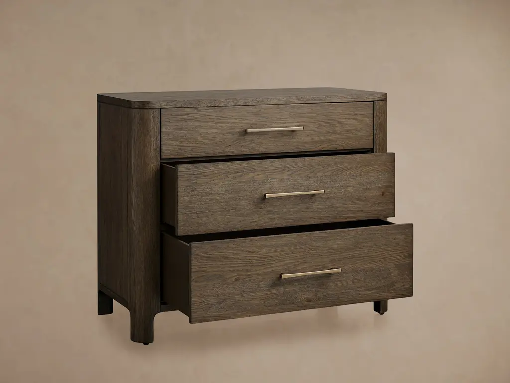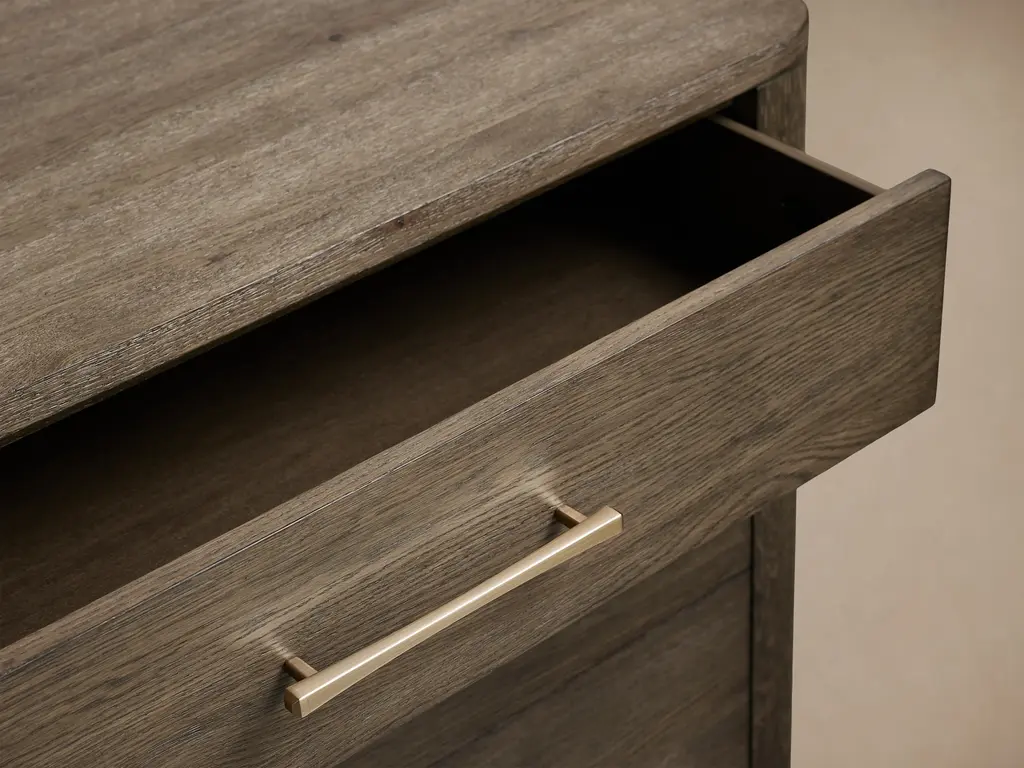 Featuring clean lines and subtle curves, our Calista Bedroom Collection is all about the small details. Crafted with veneered oak, simplistic case pieces are equipped with spacious drawers accented by beautiful pulls.