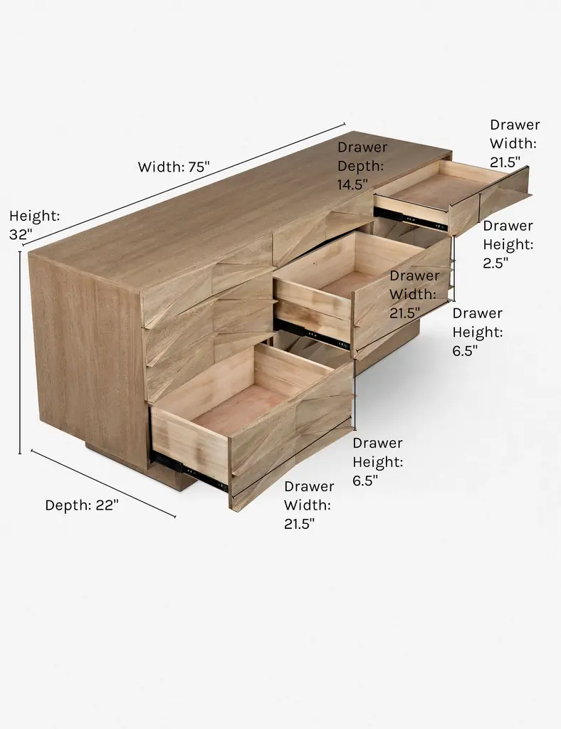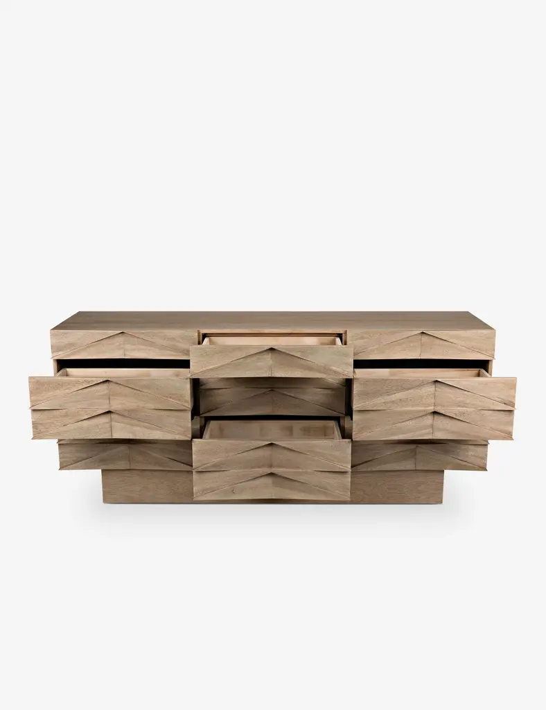 Give your contemporary space a little more dimension with this wooden dresser. Clever beveling results in an abstract chevron pattern on the front, while plenty of drawer space makes for a stylish storage solution for your bedroom.