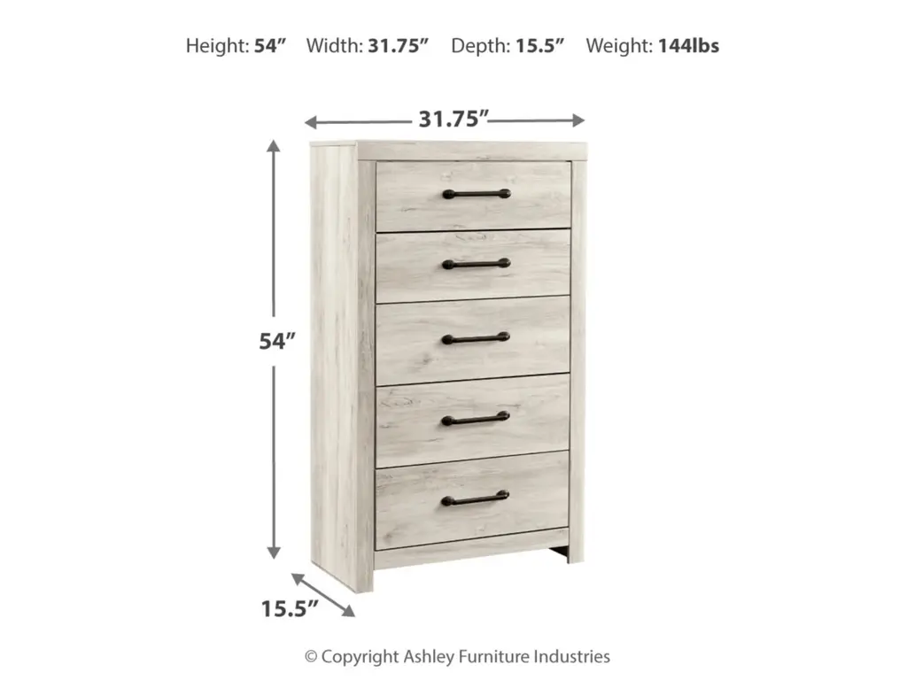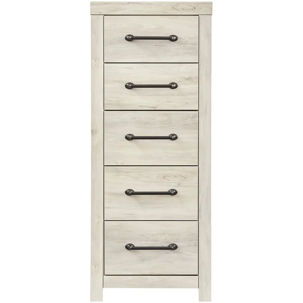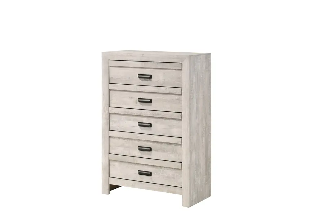 What a delightful take on rustic industrial style. Whether modern loft or modern farmhouse, the Cambeck chest makes itself at home. The wispy whitewash palette enhances without covering the grain for that weathered look you crave. Elongated drawer pulls elevate the aesthetic.