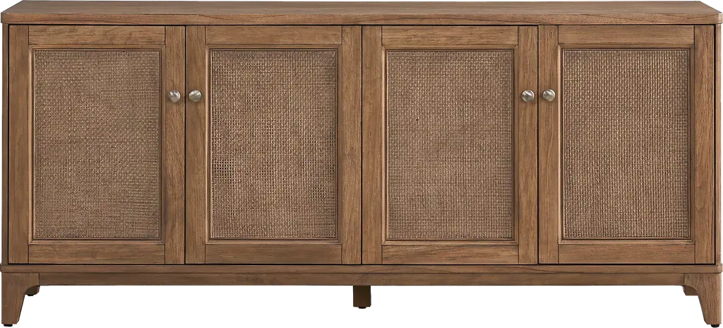 Campagna 70.6" Rattan And Natural Oak Wood 6-Drawer Dresser
