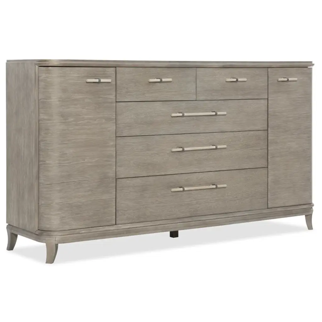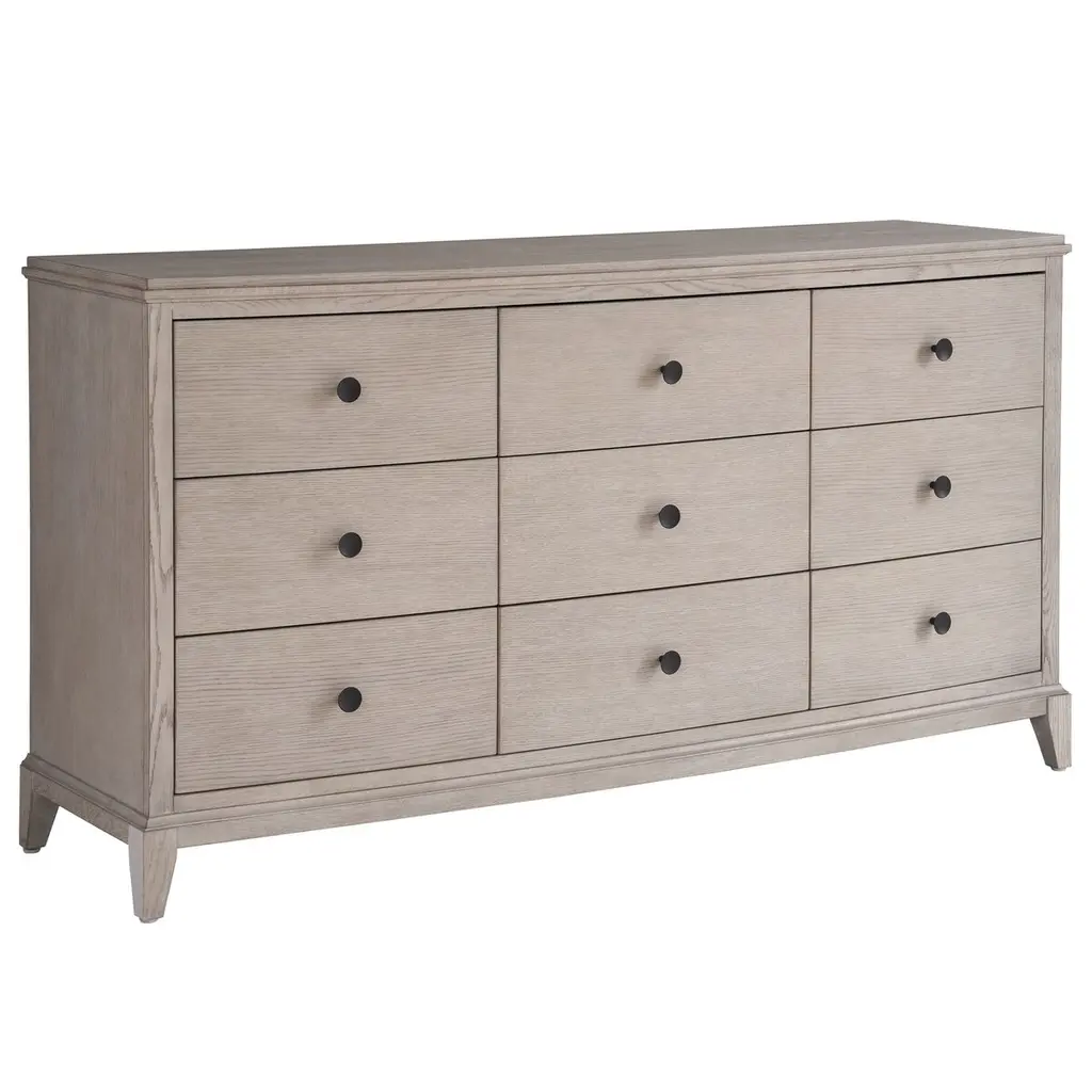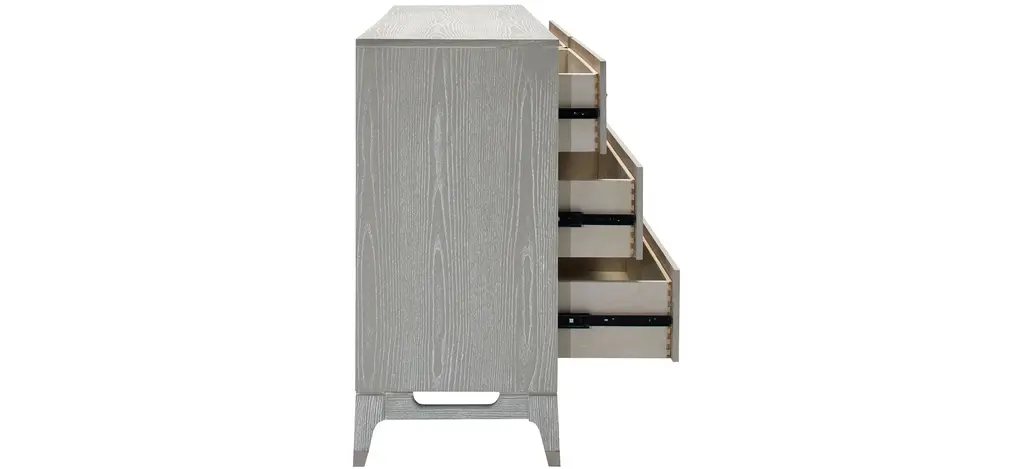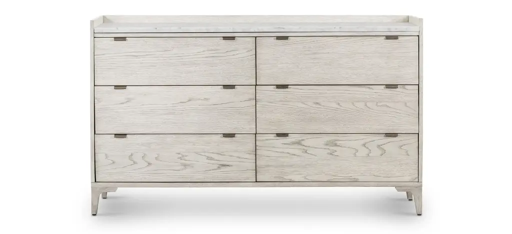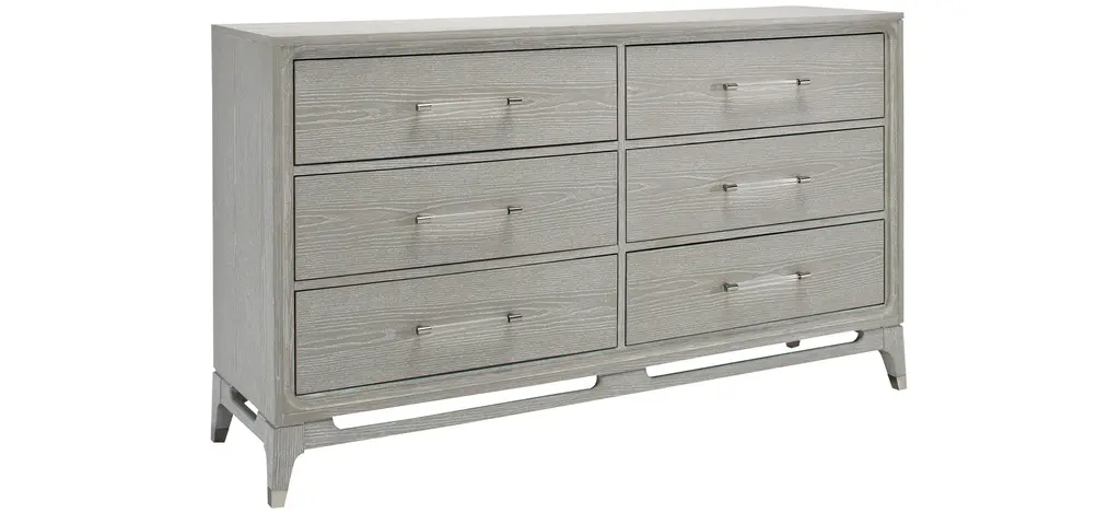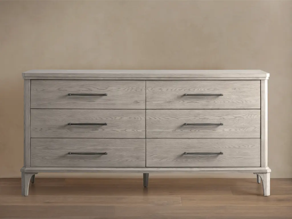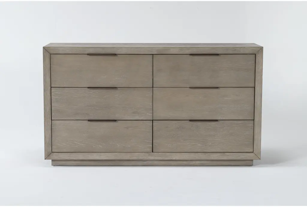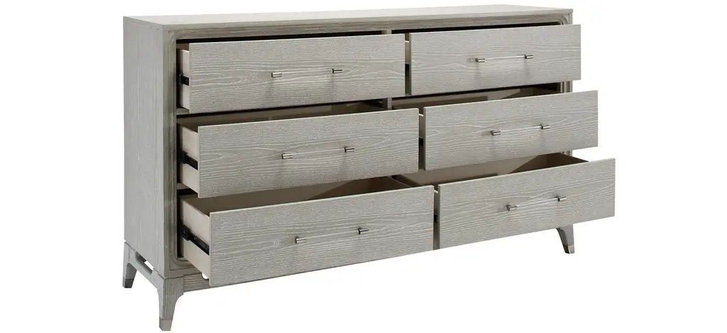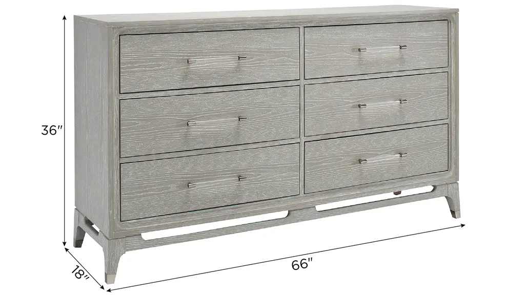 The Caprice bedroom dresser boasts a six-drawer configuration with sophisticated finishes that make it a standout piece in our contemporary category. The light oak finish adds a welcomed brightness and warmth to your bedroom! You'll be sure to find a home for all of your belongings in this piece.