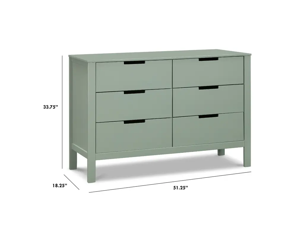 The Carters Colby 6-Drawer Dresser features six spacious drawers with open finger pulls and a streamlined, modern look. Coordinates with the Carter's Colby Crib and Colby 3-Drawer Dresser.
