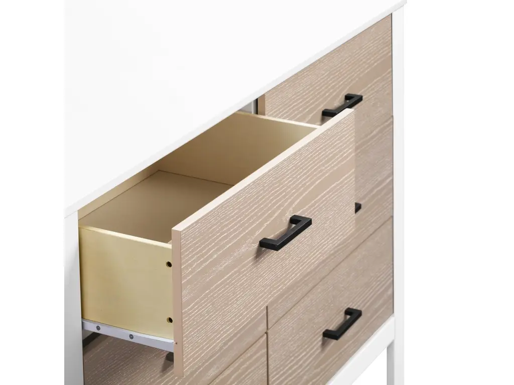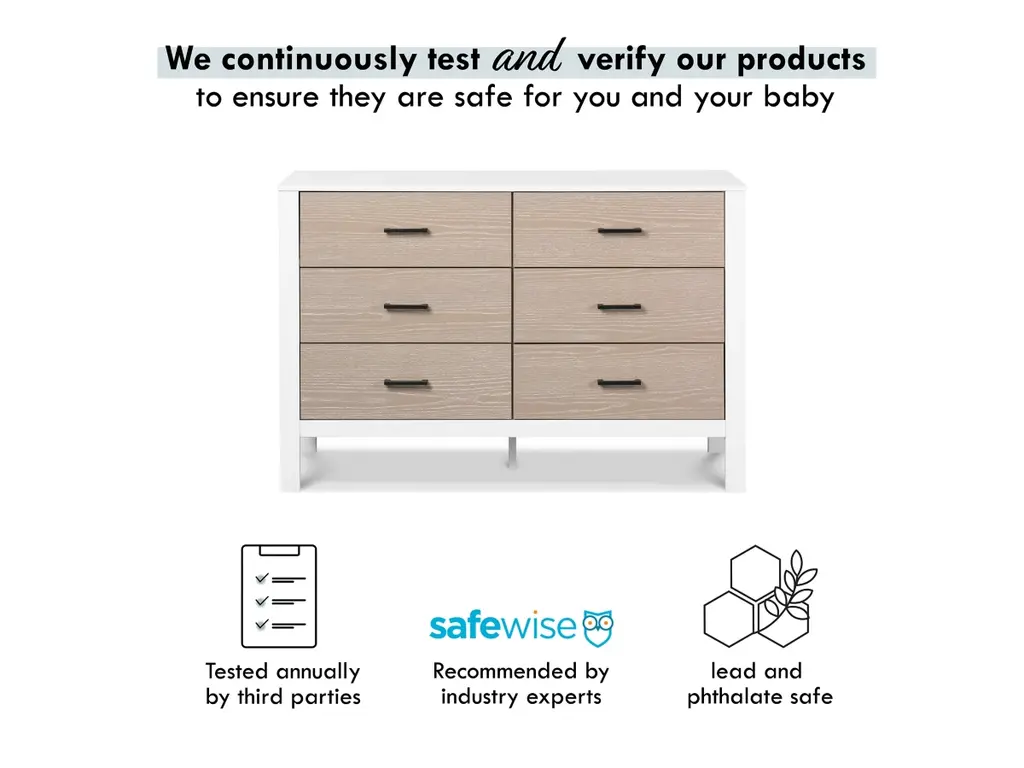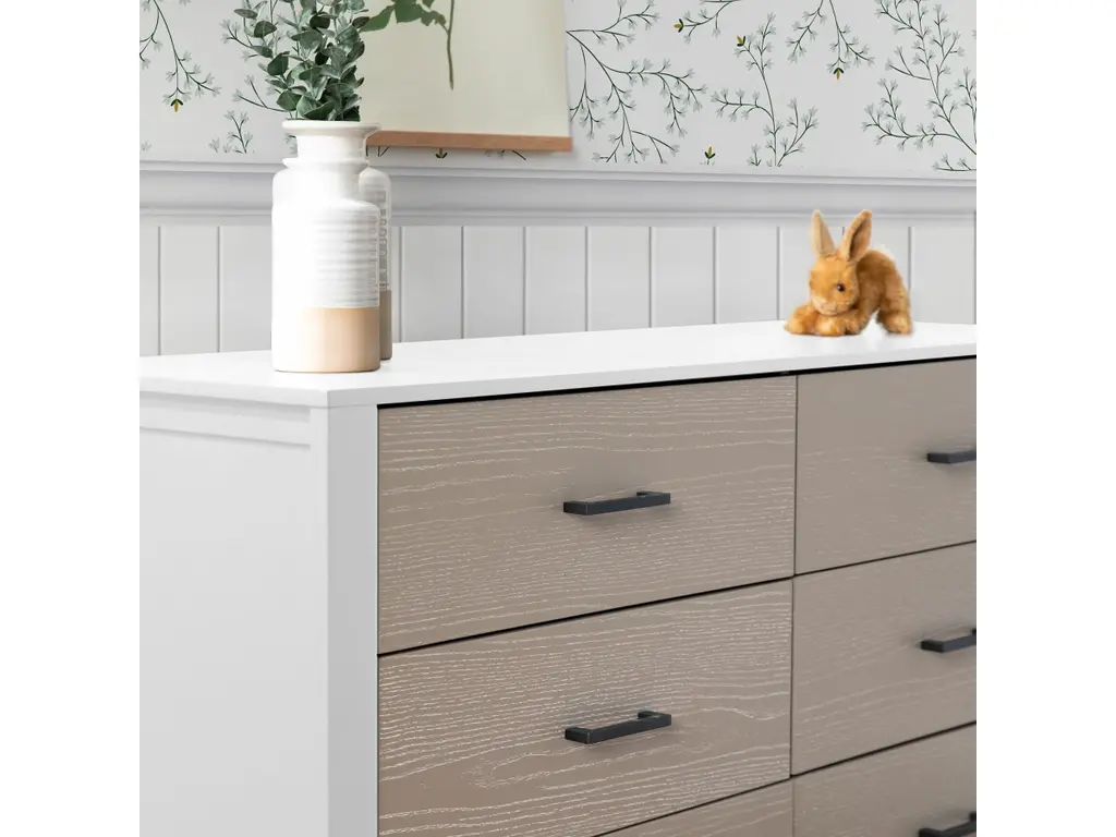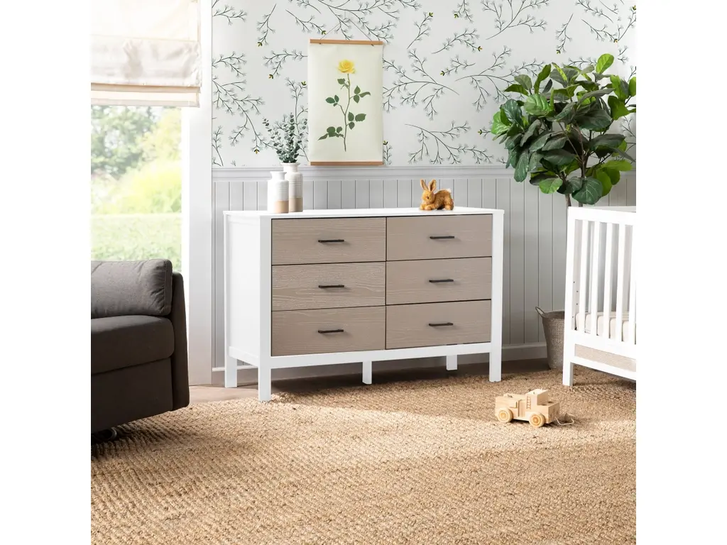 The Carter's Radley dresser combines a rustic finish with clean, modern lines for a versatile and stylish addition to your modern farmhouse nursery. Made with high-quality materials, this dresser features six drawers and is designed to provide ample storage for your baby's essentials. With its timeless design, this dresser complements any bedroom furniture