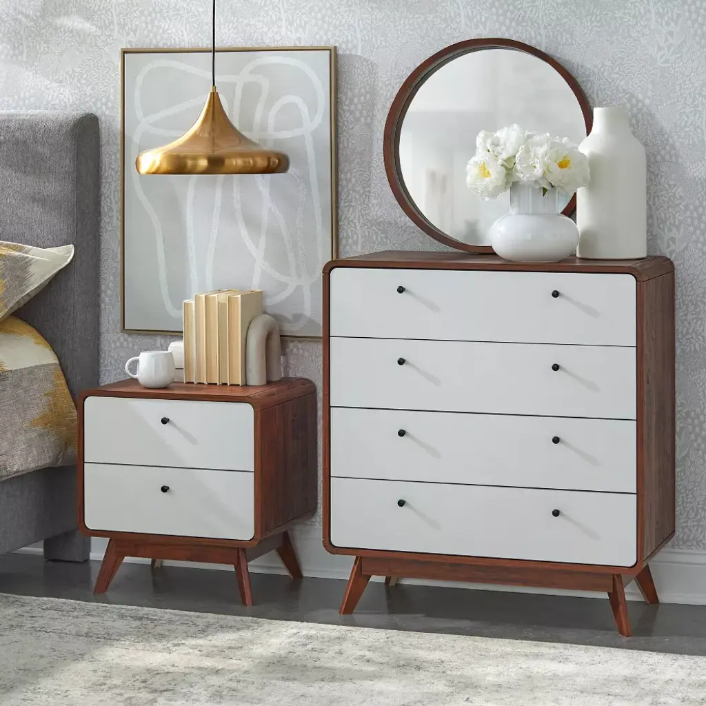 Buylateral 4 Drawer Cassie Mid Century Modern Chest Dresser Walnut/white: Bedroom Storage, Sleek Design