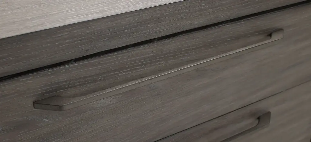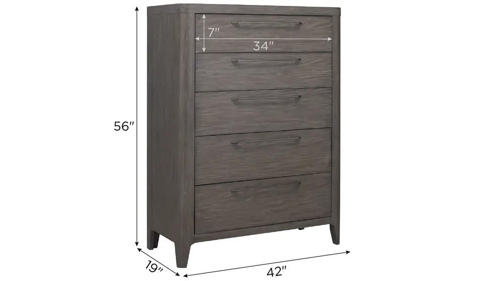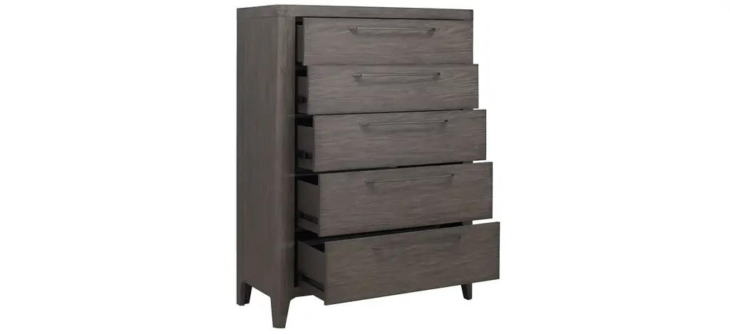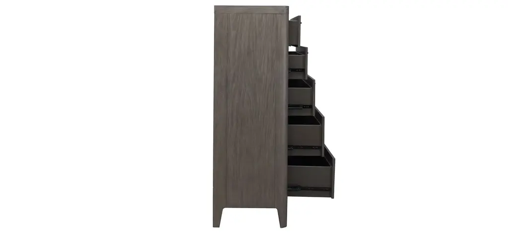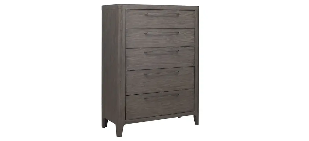 Make your sleep sanctuary a unique and special space with the Castleton collection. The clean lines and antiqued, split heart oak finish of the Castleton chest are strikingly complemented by painted metal drawer hardware. Five drawers hold plenty of clothing, bedding and more with felt and cedar lining protection.