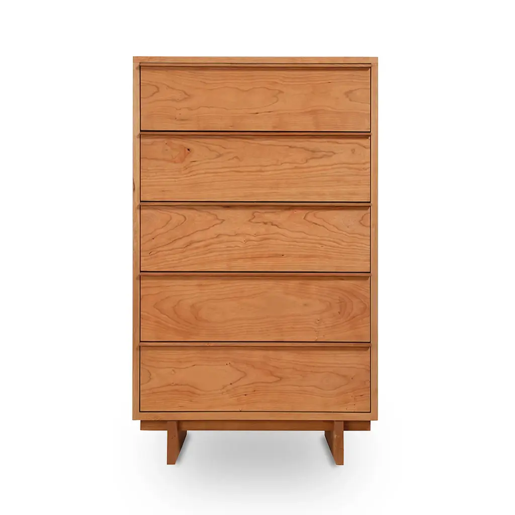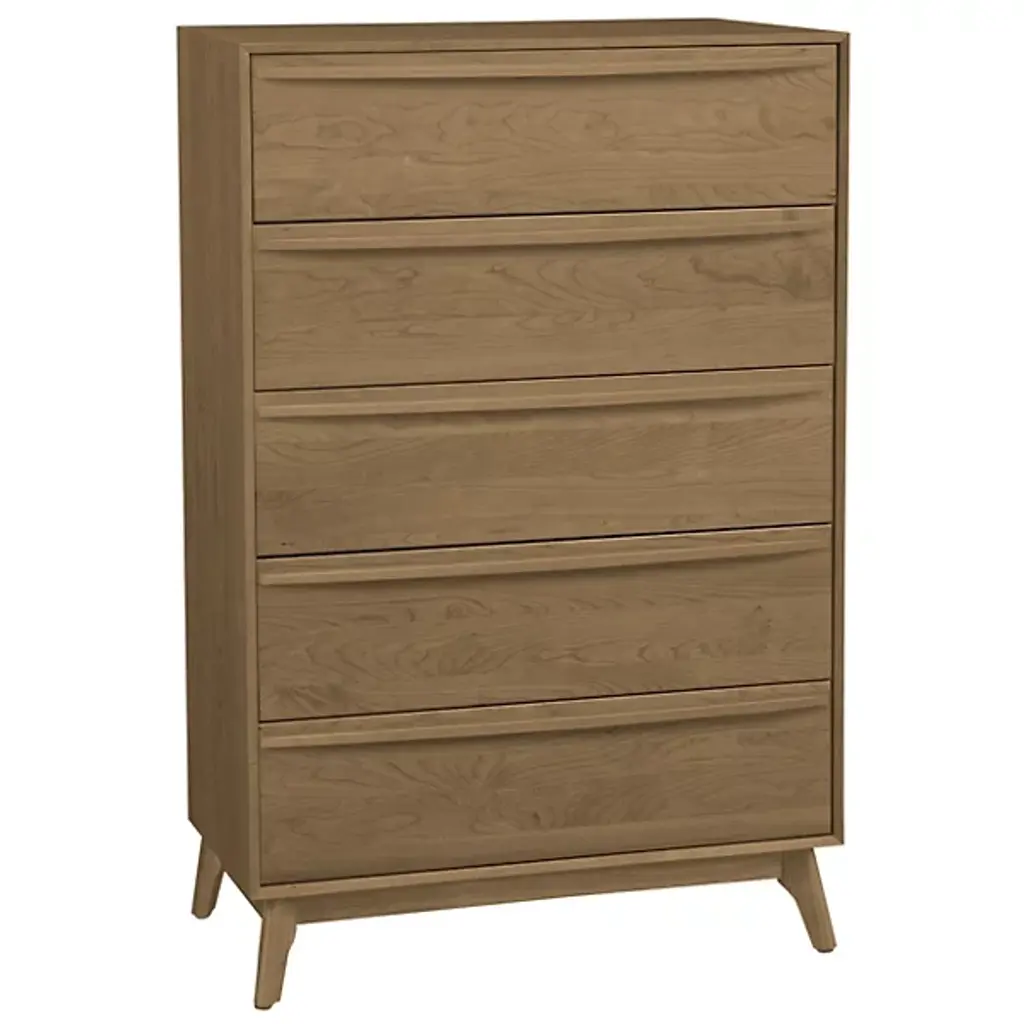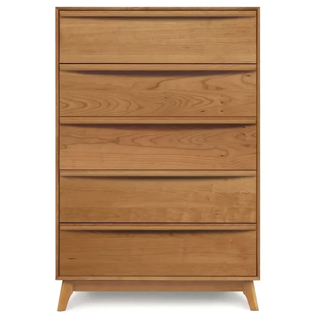 Gorgeous design with great effect. Standing tall and providing abundant storage space, the Copeland Furniture Catalina 5 Drawer Dresser - Wide helps you make the most out of your bedroom space. Five spacious drawers make room for an extensive wardrobe, with a wide body that allows for plenty of in-drawer organization. Each of the compartments comes with full extension and self-closing glides, adding a protective element to keep the Solid Hardwood in prime condition. The Wood, selected and prepared by hand in Vermont, delivers a strong, natural aesthetic to every inch of the dresser’s sizable frame. Built to work well and look good for years to come, this unit has everything needed to transform your bedroom.