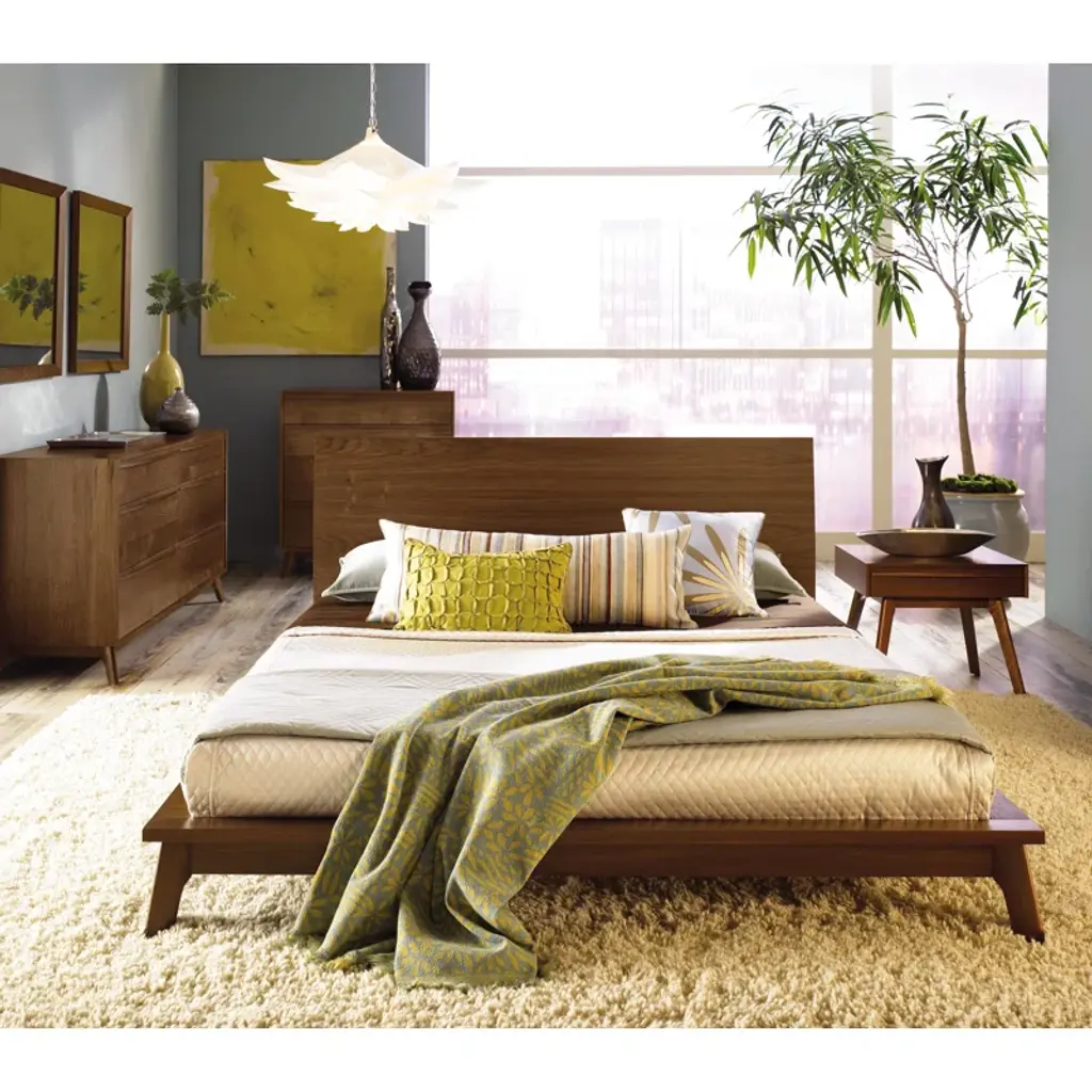 Combining the clean, unadorned lines of the International Modernists with organic and geometric forms, the Catalina Collection is suggestive of the works of America's Mid-Century Modern designers. The years following WWII were a time of uncertainty but also of great hope and progress. Designs of the period reflected that sense of hope and the promise of an ideal future. In our current period, one finds comfort and nostalgia in Catalina's retro-modern shapes and sensibilities. The Catalina Bedroom is crafted in solid cherry hardwood.