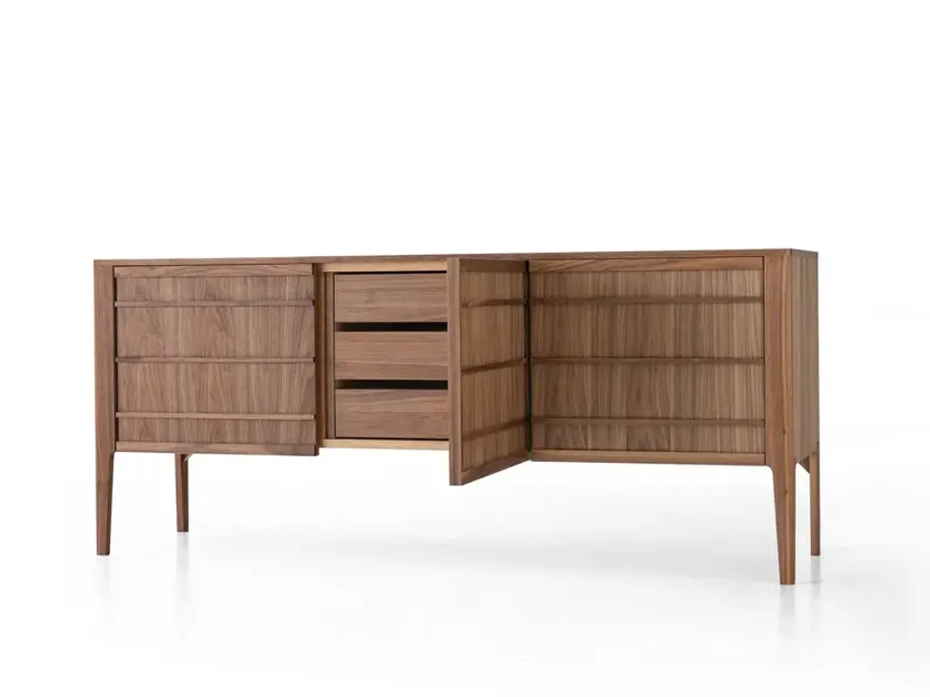Up your style and storage versatility in the bedroom with the Copeland Furniture Catalina Dresser - 3 Drawers and 2 Doors. In addition to three drawers for all your foldables, this dresser also includes a large cabinet (with adjustable shelf). This piece is made entirely out of solid hardwood, including the splayed-leg base and door and drawer pulls.