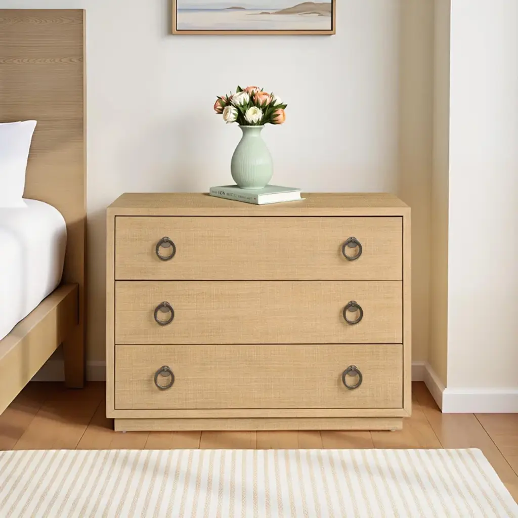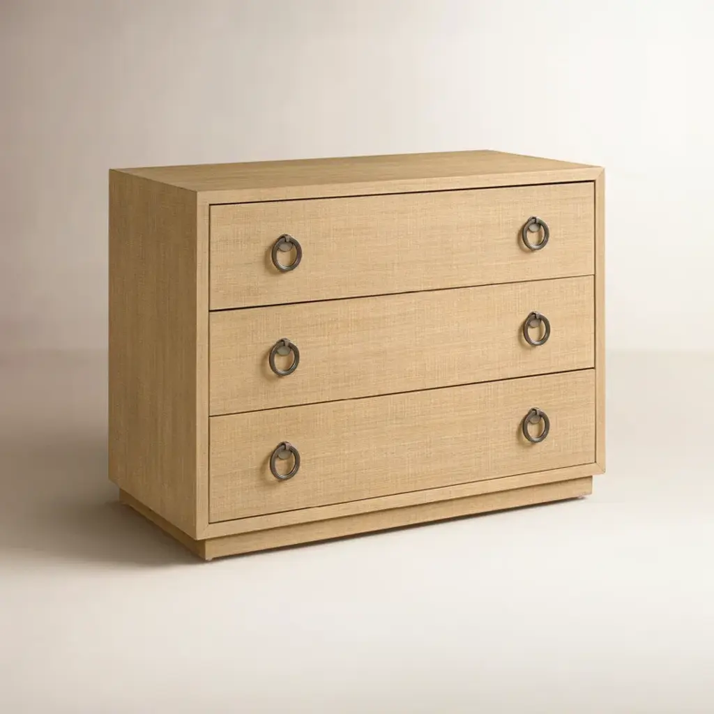 The Ghizzano chest is a sophisticated blend of mid-century modern and contemporary design. Its three spacious drawers, adorned with sleek metal ring pulls, offer ample storage. The clean lines and skylark finish create a refined aesthetic that complements a variety of interior styles.