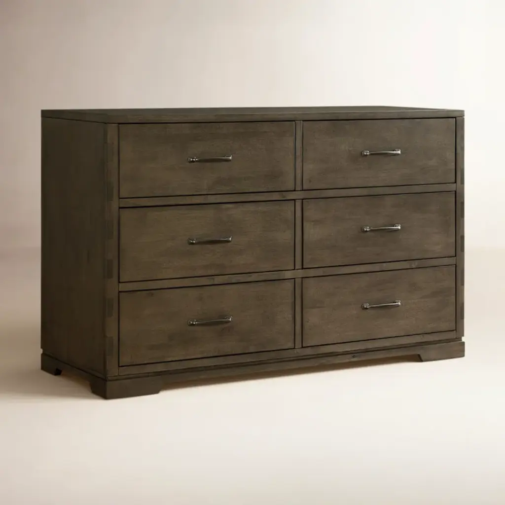 Century Kendall Rustic Grey Oak Wood Brass Hardware 6 Drawer Double Dresser