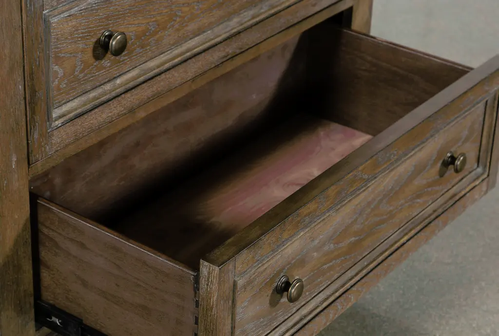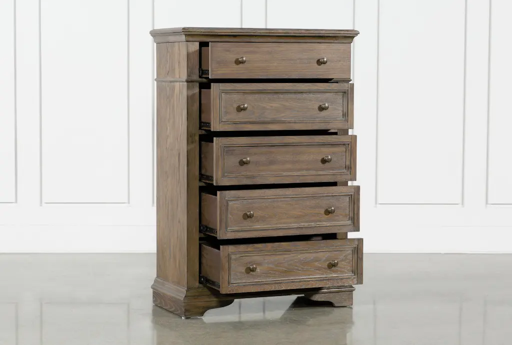 Elegantly detailed and skillfully constructed, our Chapman chest will bring traditional beauty to your space. Solid hardwood and white oak veneers combine to create this stunning, sturdy design, which features felt-lined drawers, a cedar-lined bottom drawer, ball-bearing glides and English dovetail joinery.