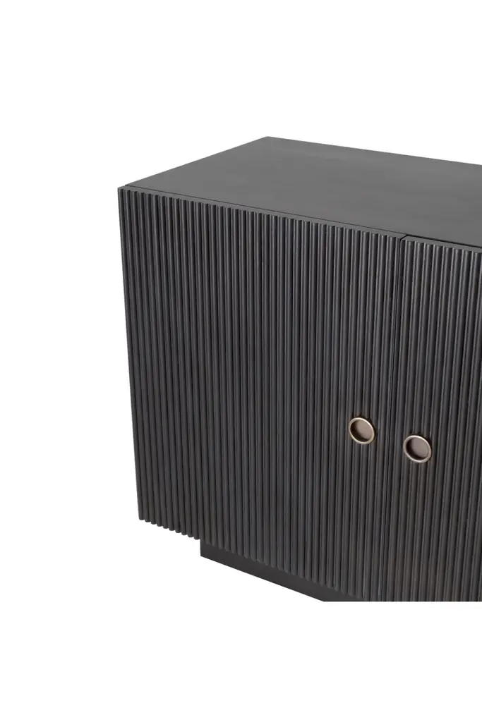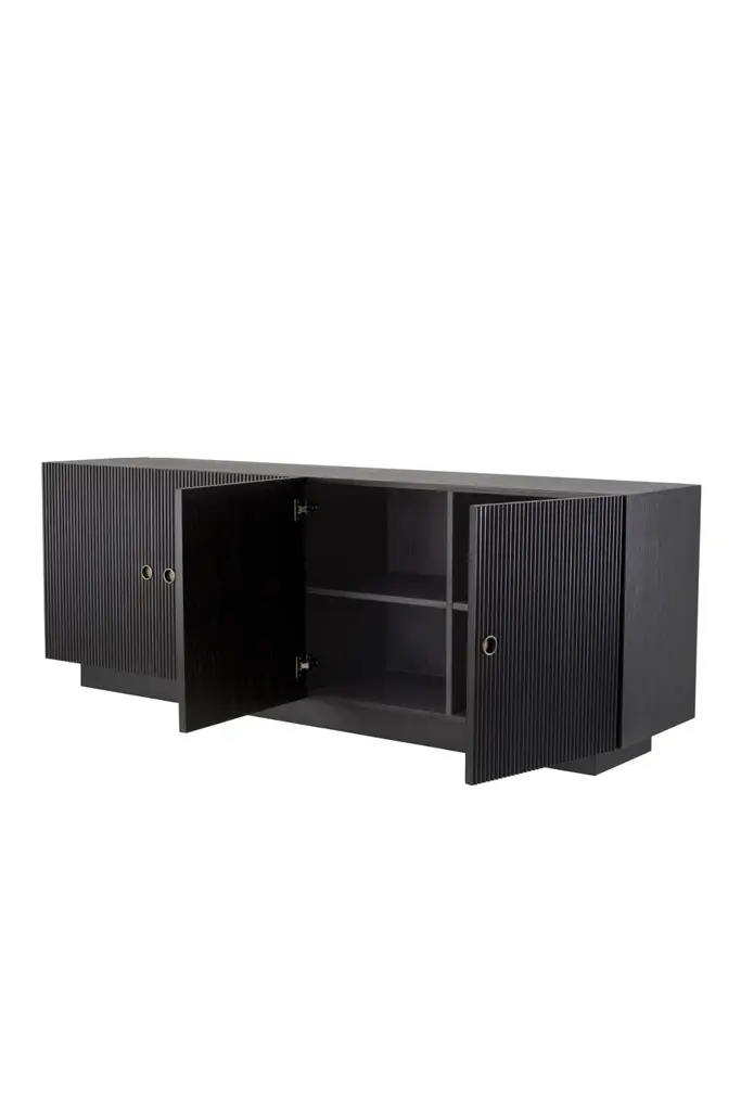 Dresser Dimitrios allows you to store favorite keepsakes and other essentials while adding exclusive style to your home. Sleek and stylish, this sideboard with ribbed door panels adds a touch of Mid-Century Modern chic to your living space. Its vintage-inspired design has a solid body with charcoal gray oak veneer and bronze finish hardware. W87 x D20 x H31 in | Weight 209lbs W220 x D50 x H79 cm | Weight 95kgs Material | Mahogany Wood Download Specification Sheet W87 x D20 x H31 in | Weight 209lbs W220 x D50 x H79 cm | Weight 95kgs Material | Mahogany Wood Download Specification Sheet