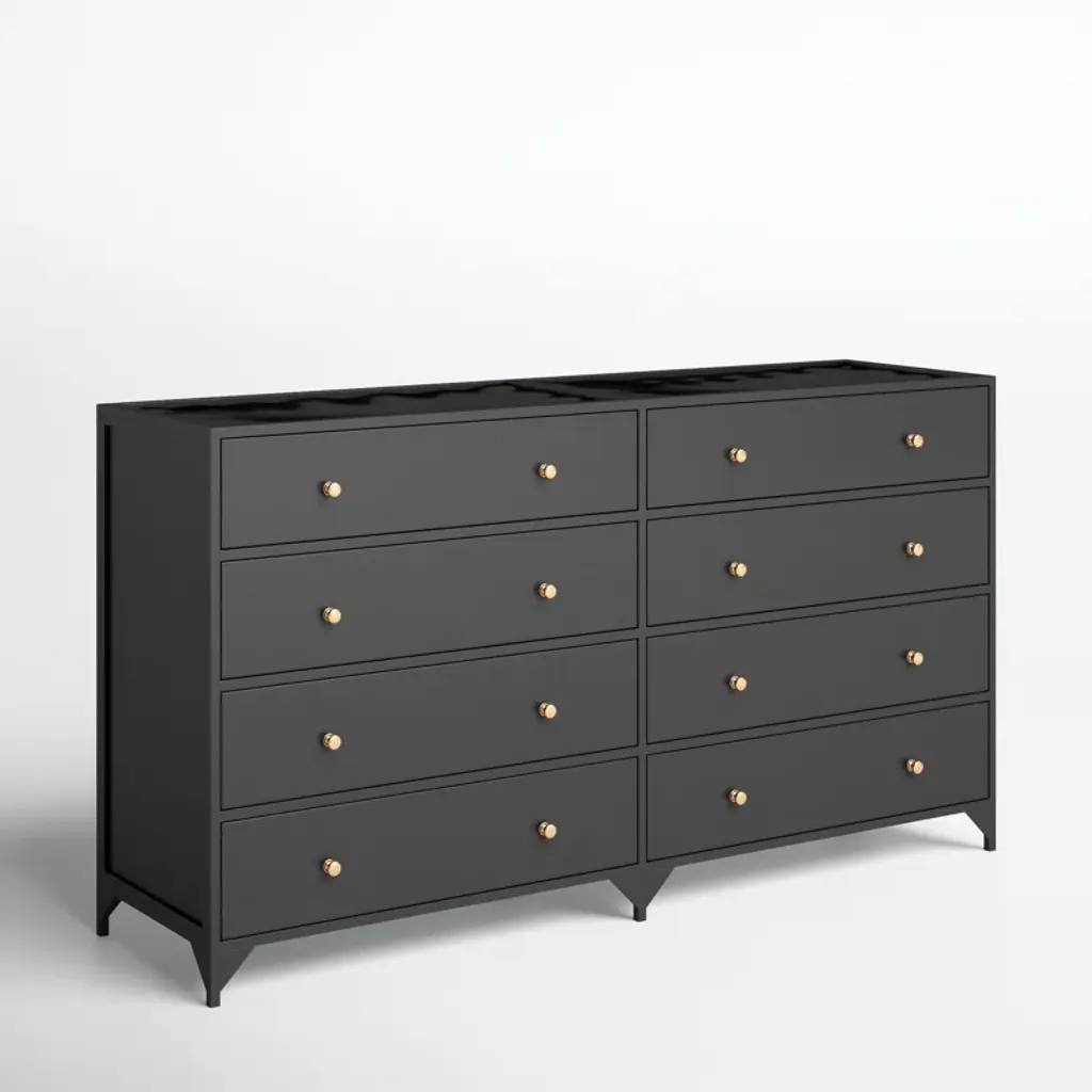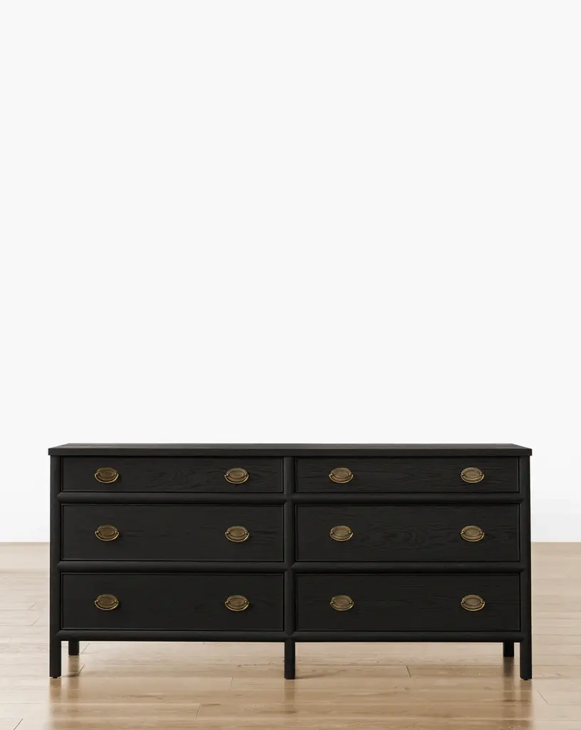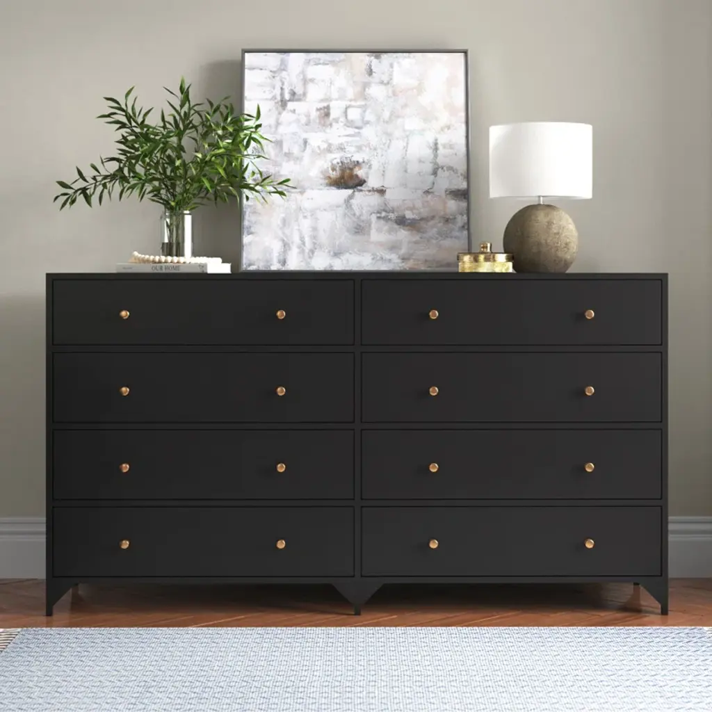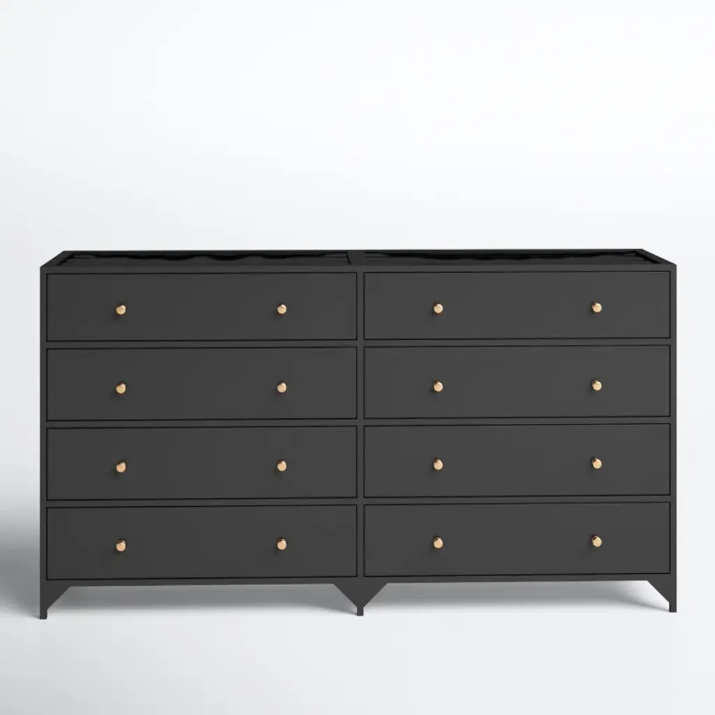 With its matte black finish and gleaming metallic hardware, this 8-drawer dresser adds a fresh feel to any room. It's crafted from iron, and it sits on short, angular legs for a low-profile look. The roomy drawers provide just the right amount of space for cozy sweaters, classic tees, and your favorite jeans. We love that this dresser comes with a wall anchoring kit for added safety. Plus, it arrives fully assembled, so you can skip to the fun part – styling.