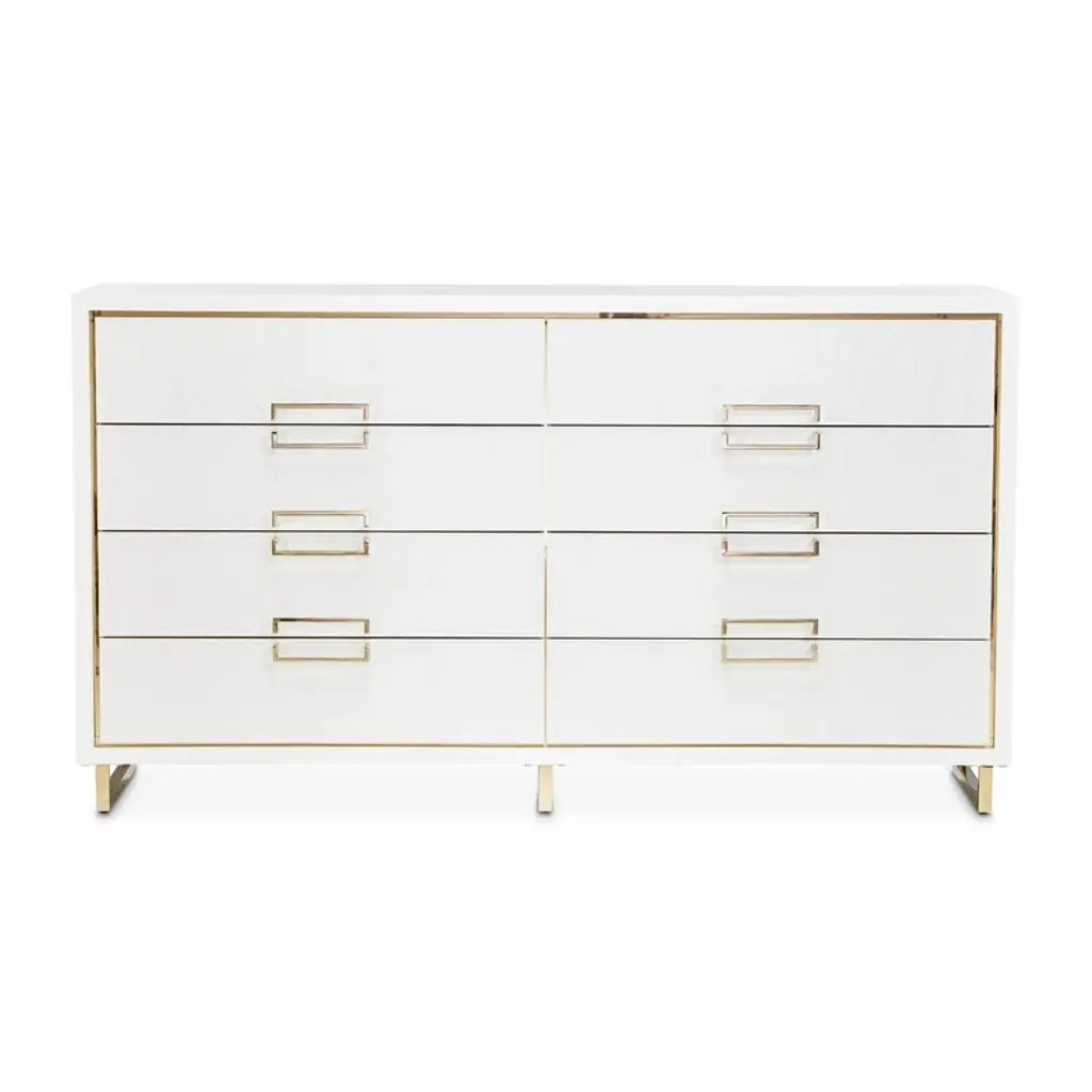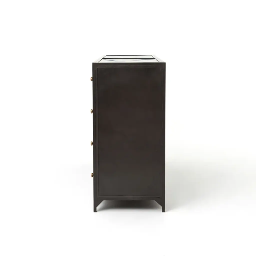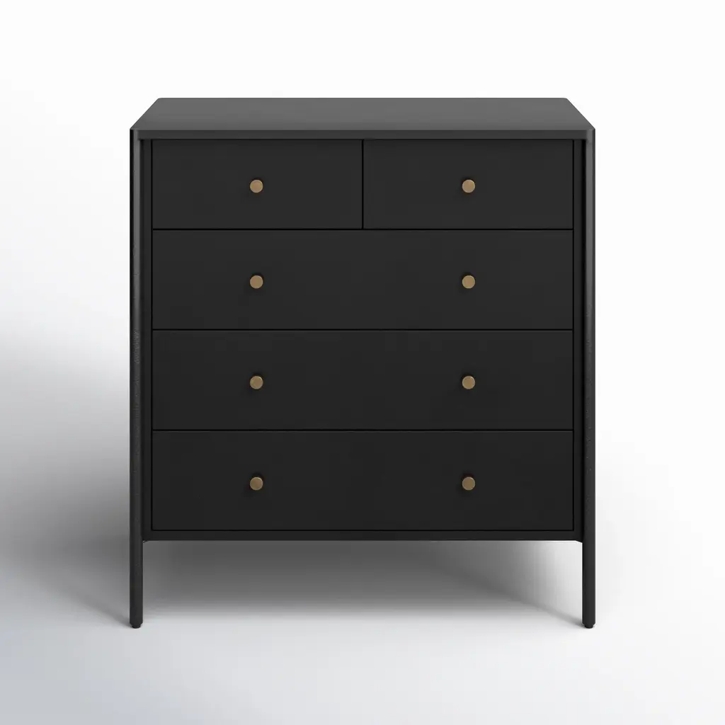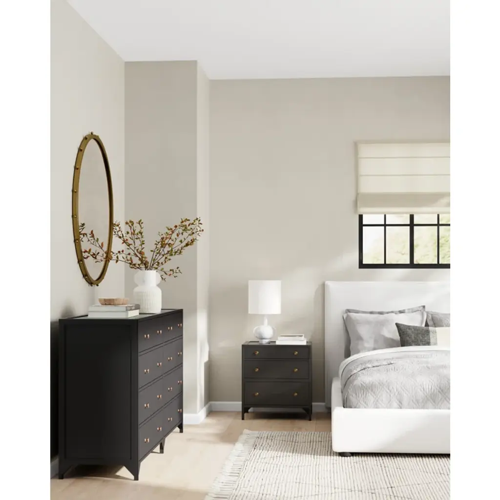 With its matte black finish and gleaming metallic hardware, this 8-drawer dresser adds a fresh feel to any room. It's crafted from iron, and it sits on short, angular legs for a low-profile look. The roomy drawers provide just the right amount of space for cozy sweaters, classic tees, and your favorite jeans. We love that this dresser comes with a wall anchoring kit for added safety. Plus, it arrives fully assembled, so you can skip to the fun part – styling.