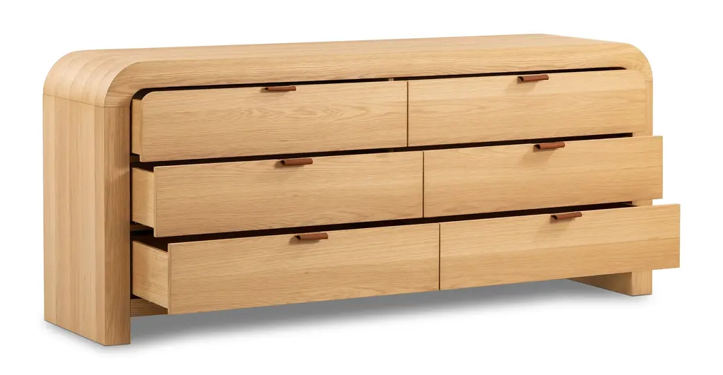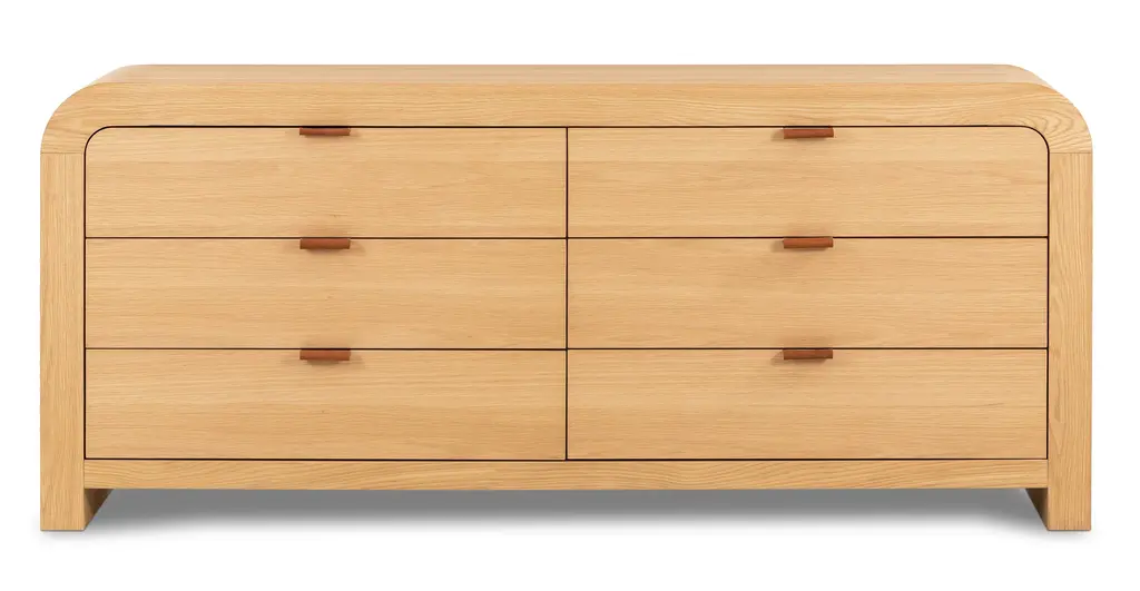 We’re falling hard for the waterfall detail on our Cirq Dresser. This natural looker is not just another pretty façade, there’s plentiful storage inside, too. Six soft-close drawers (with supple leather pulls - ooh la la) are the ultimate indulgence when it comes to functional furniture, and you’ll love that this dresser also has matching nightstands. Say hello to chic coordination!