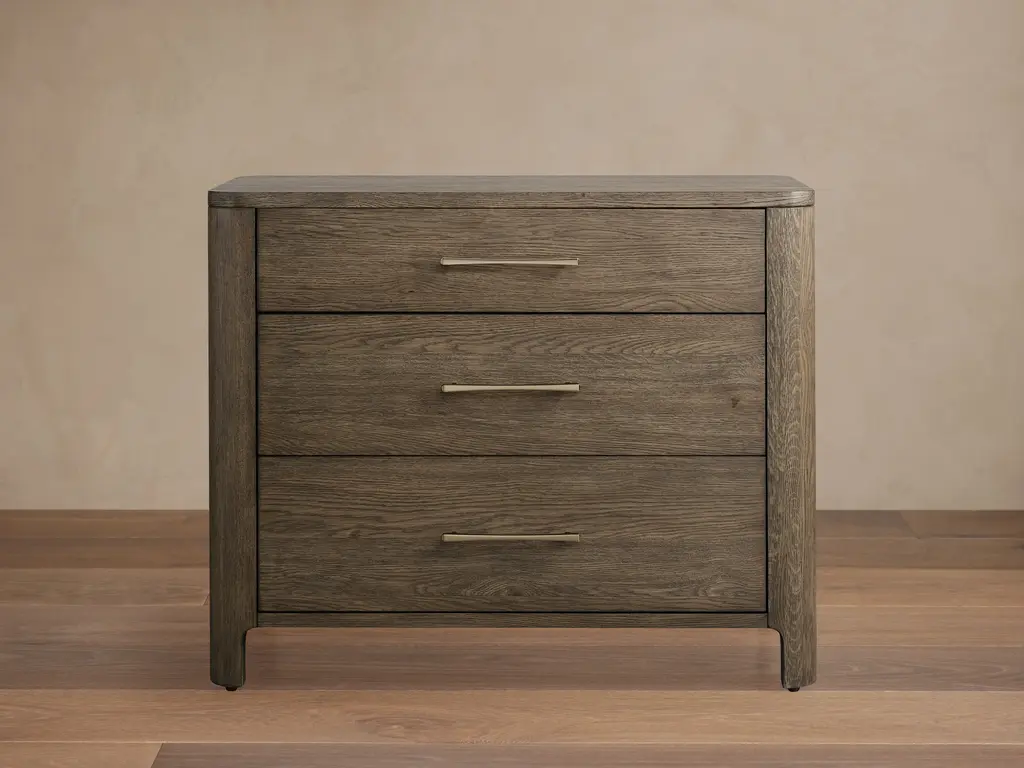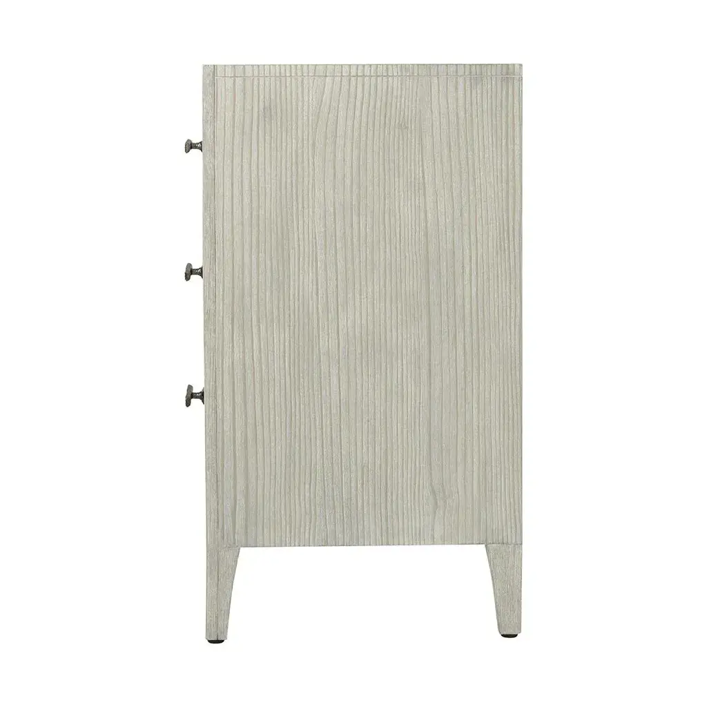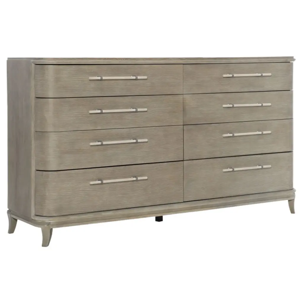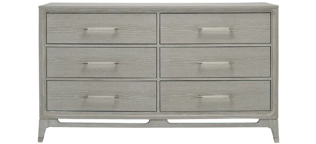 Designed to offer even more bedroom storage, the dresser is crafted from quartered pine in our sea salt finish and accented by uniquely cast ribbed bar hardware in a dark sterling finish. With soft close drawers atop tapered feet. Dimensions: 48" W x 19" D x 34.25" H