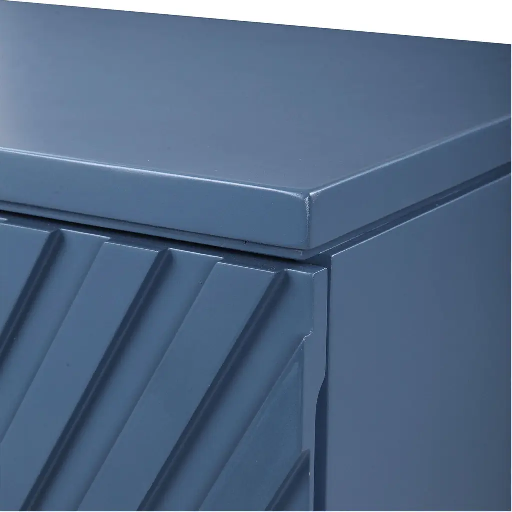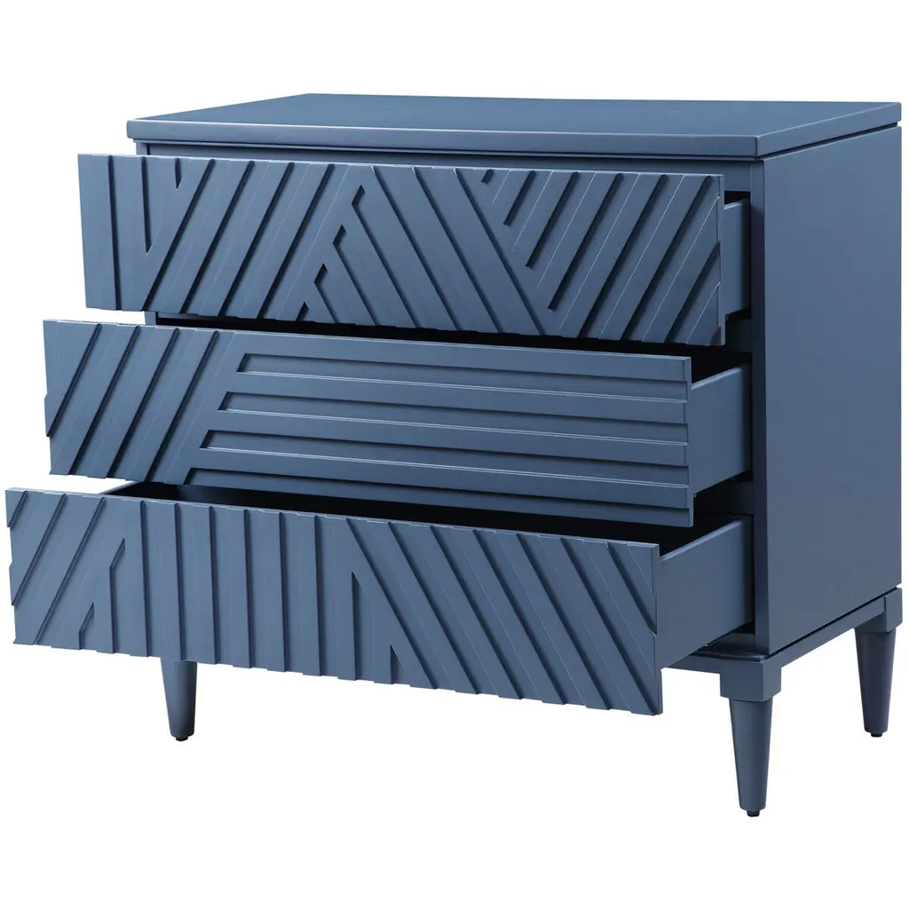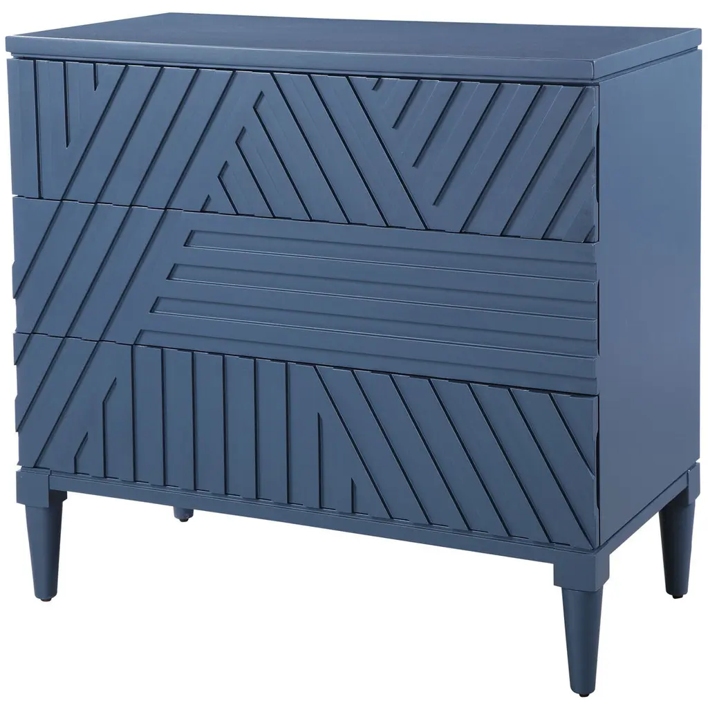 Refreshingly Modern, This Geometric Accent Chest Features Carved Drawer Fronts, Creating A Monochromatic Statement In A Deep Sea Blue Finish.