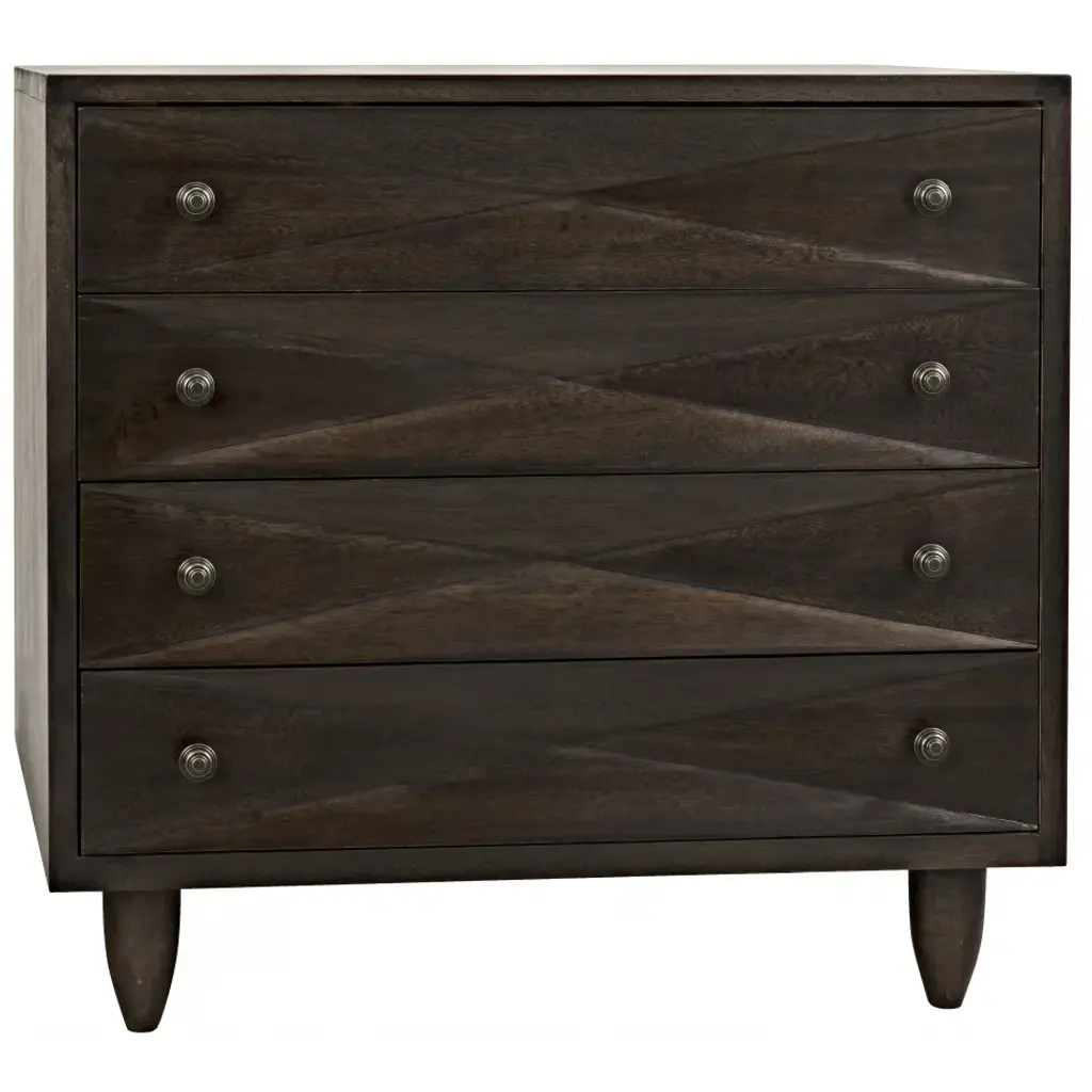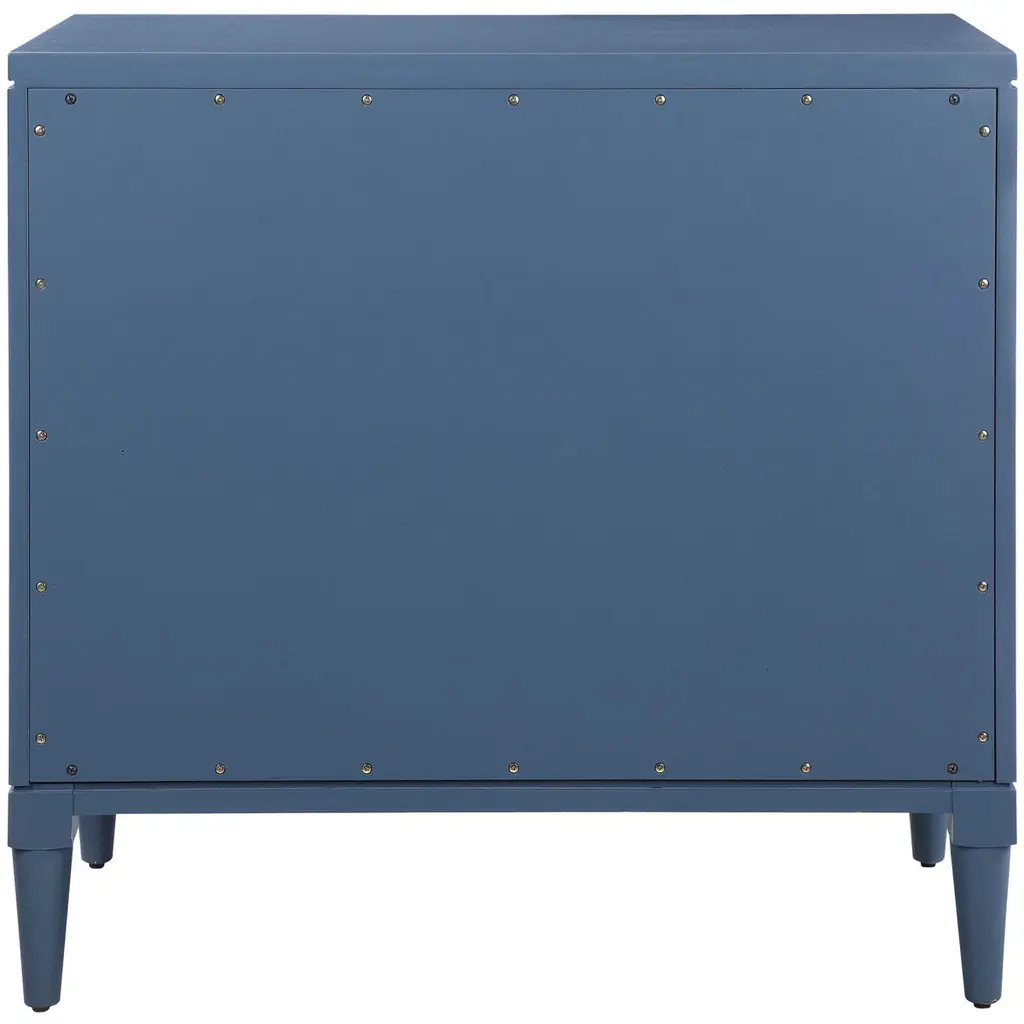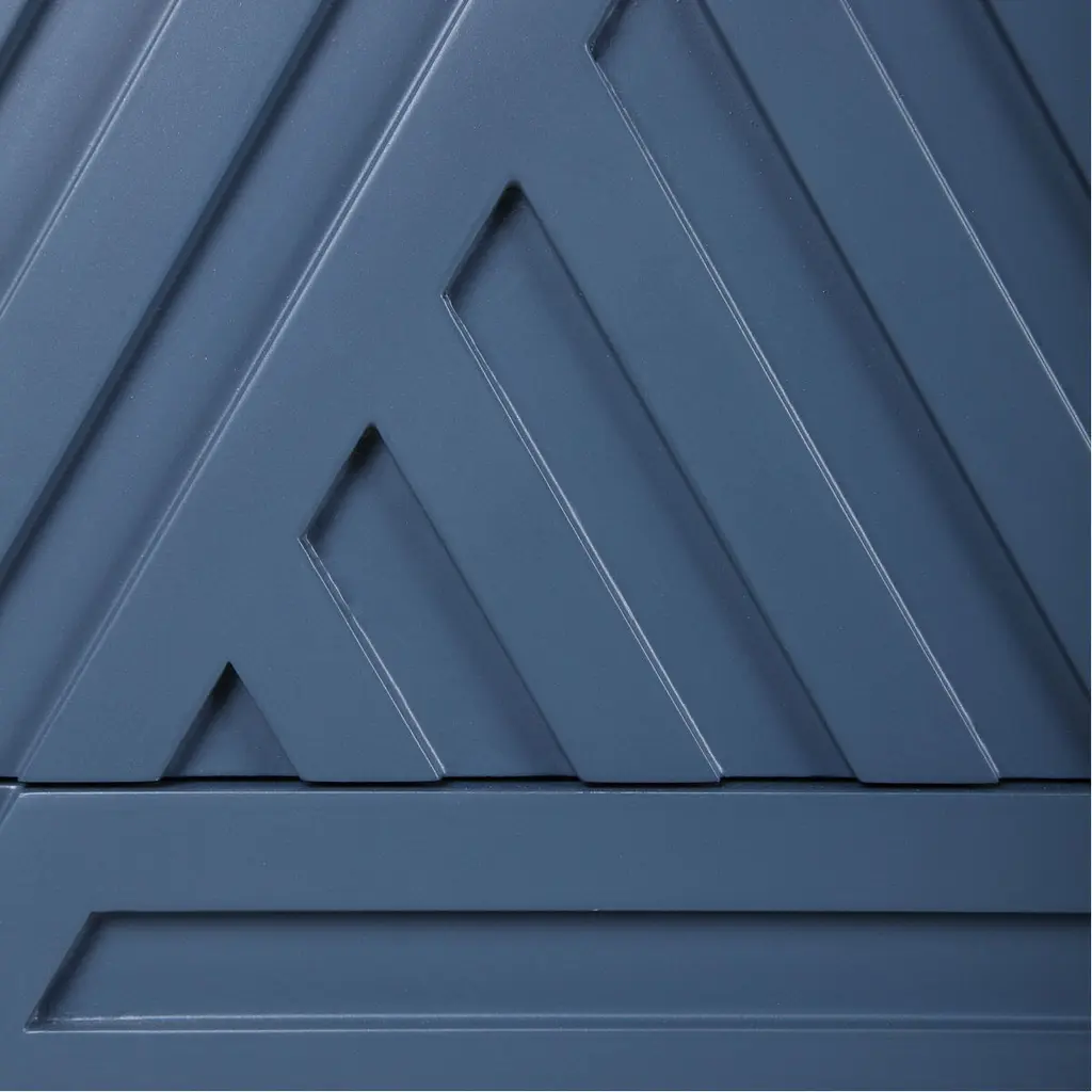 Refreshingly Modern, This Geometric Accent Chest Features Carved Drawer Fronts, Creating A Monochromatic Statement In A Deep Sea Blue Finish.
