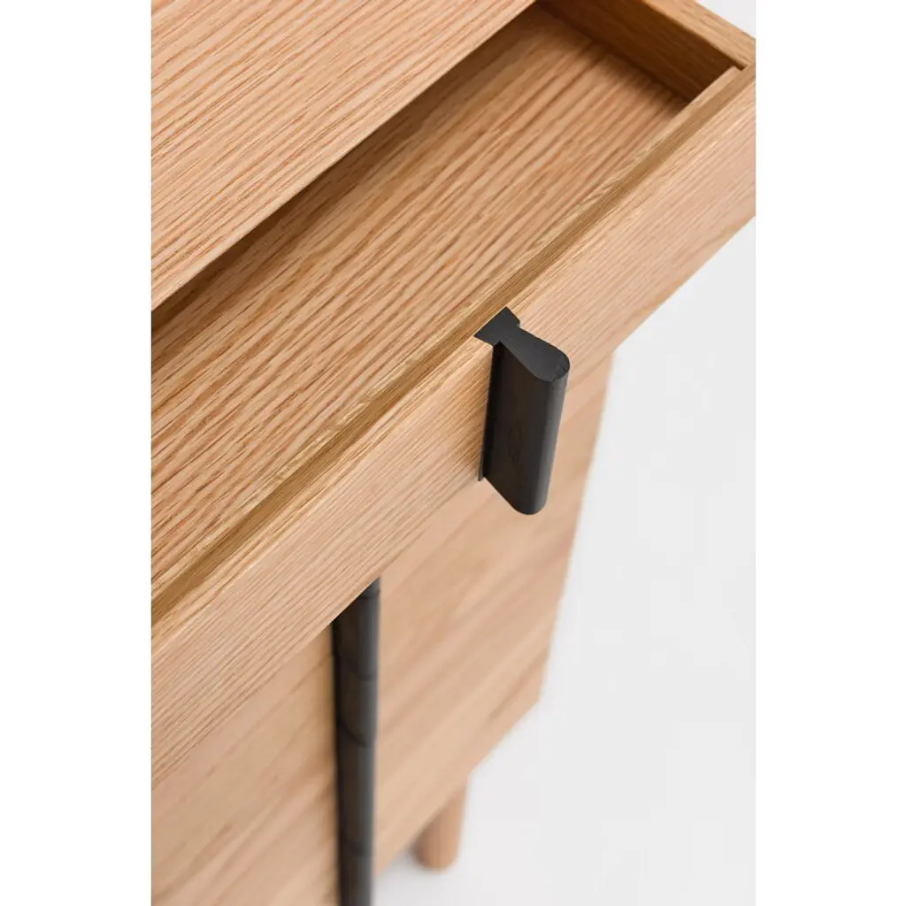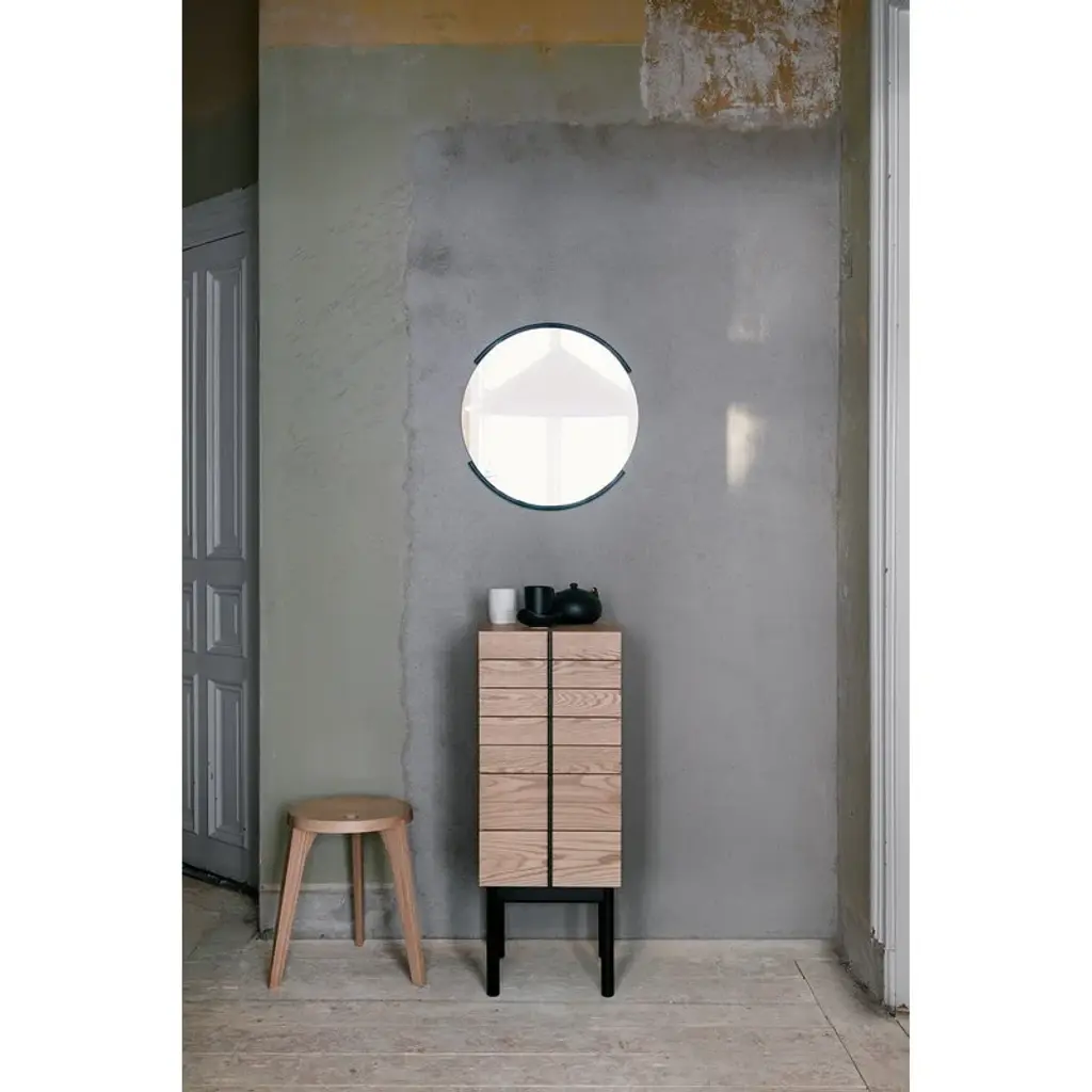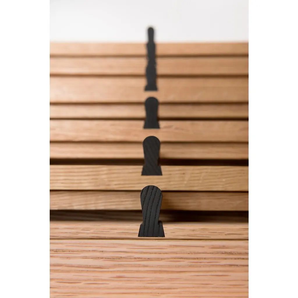 Ariake’s Column chest of drawers is defined by the handles placed right at the center of the drawers to create a vertical column when the drawers are closed. The beautiful black shade has been achieved using an old Japanese technique where the wood is painted with black ink, "sumi". Practical and ergonomic aspects have also been taken into consideration: the chest, designed by Gabriel Tan, has been lifted up from the ground so that it is easier to reach the lower drawers of the chest. The chest has five smaller and two larger drawers.