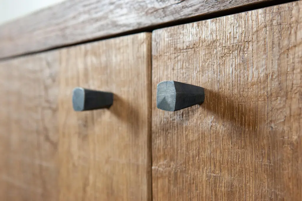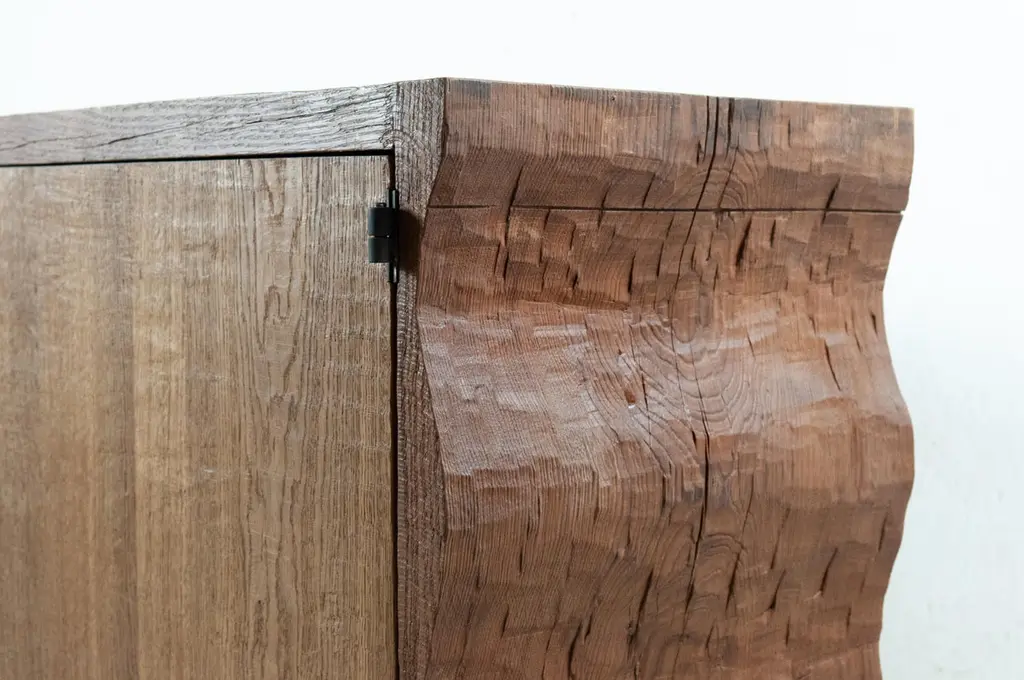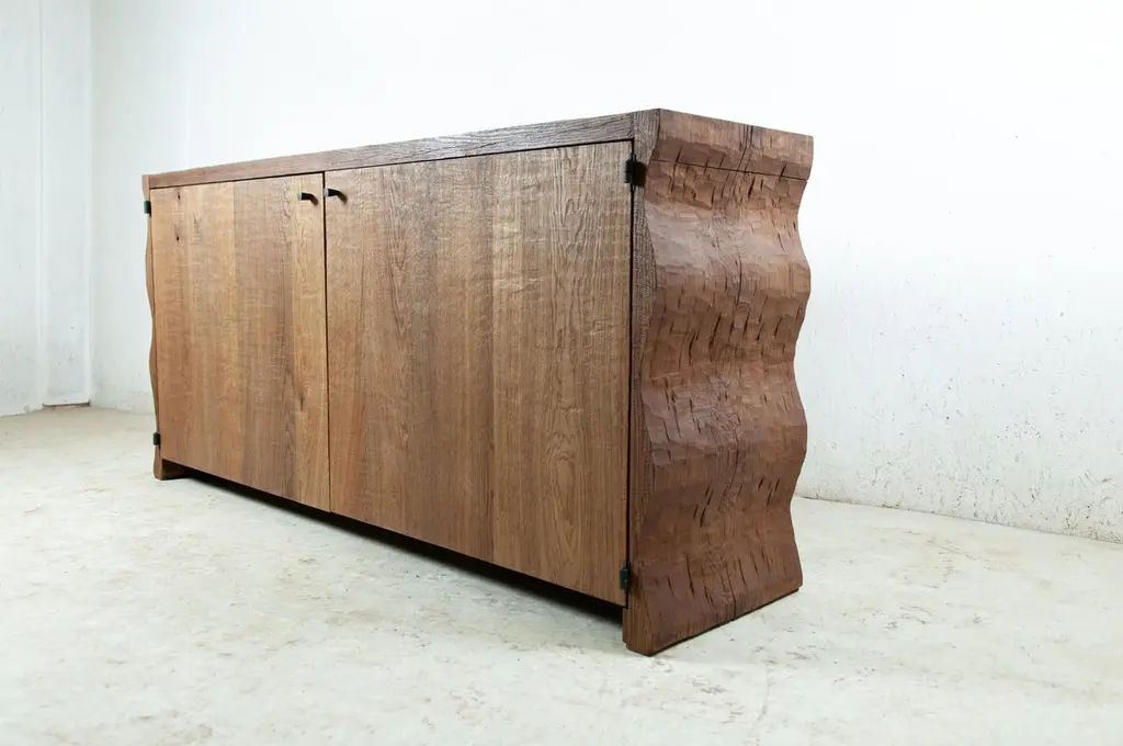 Dresser / cabinetSculpted wood (solid oak)Finish: wavy, mediumWarm furniture’s made by Russian designers from "Soha Concept" studio lead by the artist Denis Milovanov. Simplicity of shapes. Authentic material.Wooden items are created from oak and are boiled in oil from several days to several weeks, to achieve a natural wood coloration from a dark brown to a complete black color. Patterns are applied solely by chain saw.Unique piece made to order.