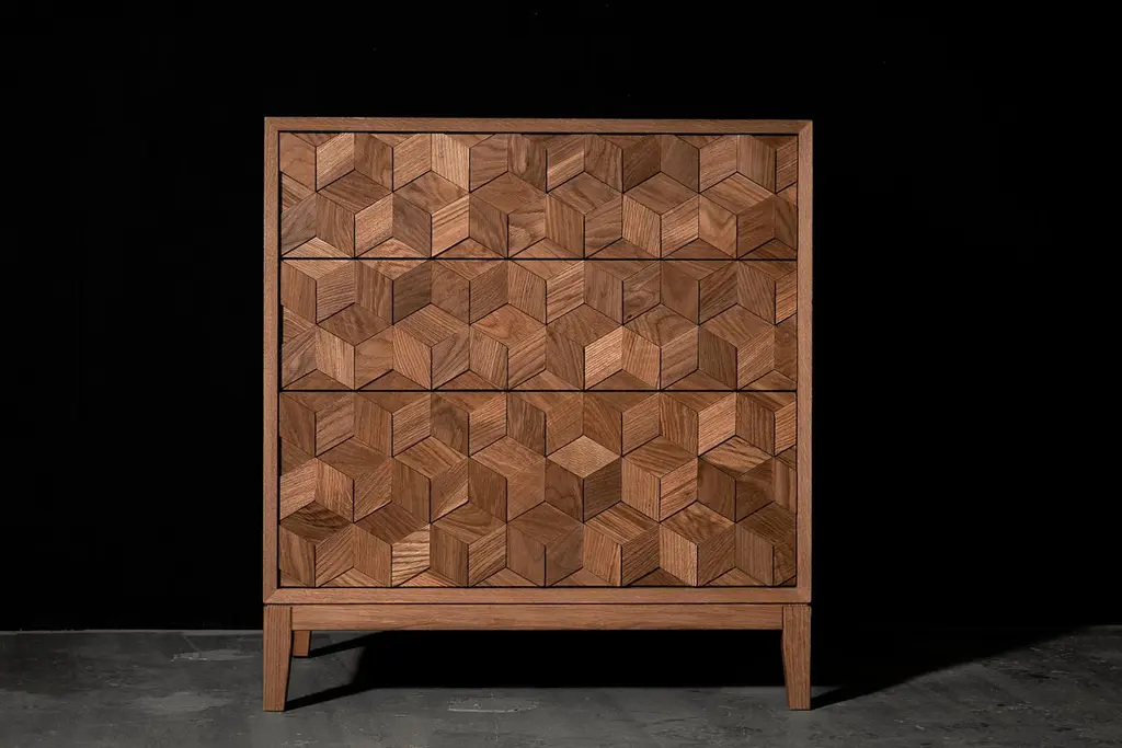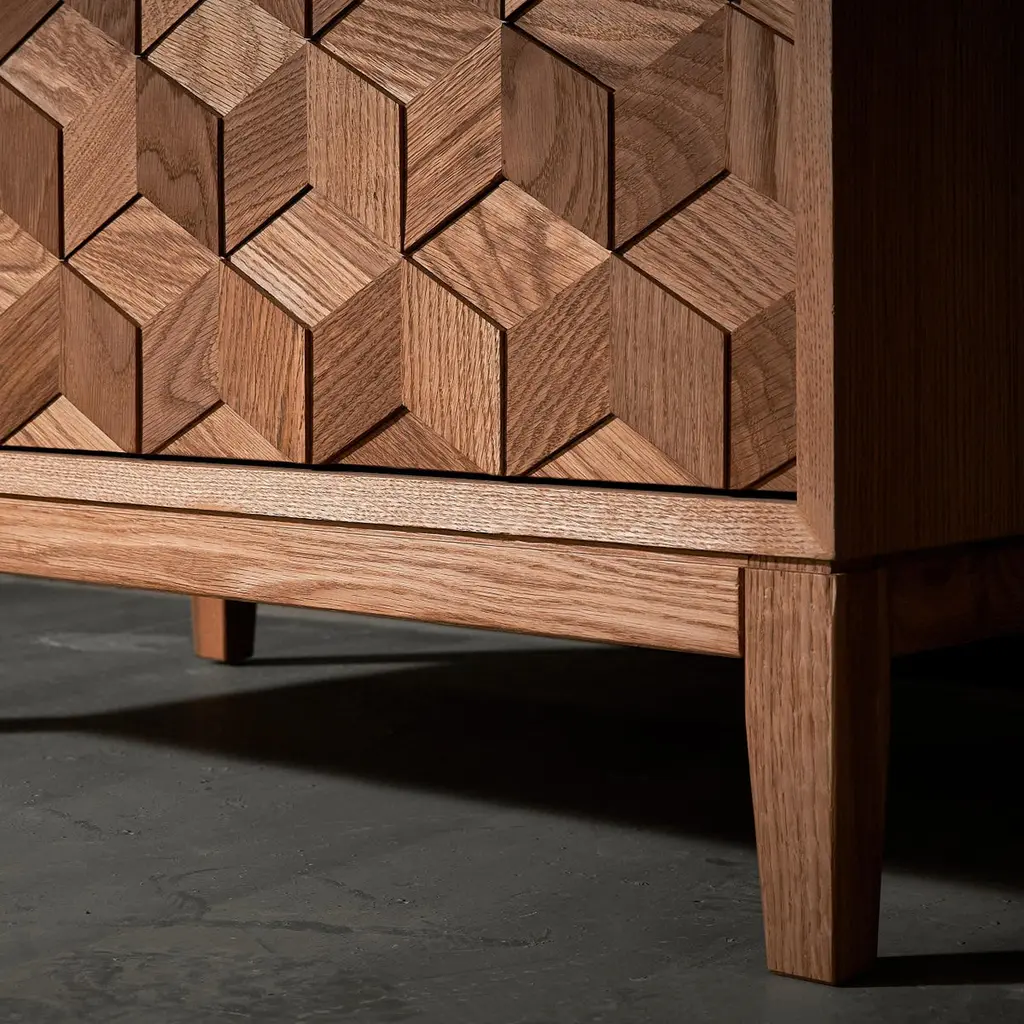 Contemporary Commode In Solid Oak With Hexagon Oak Mosaic + 3D Model
