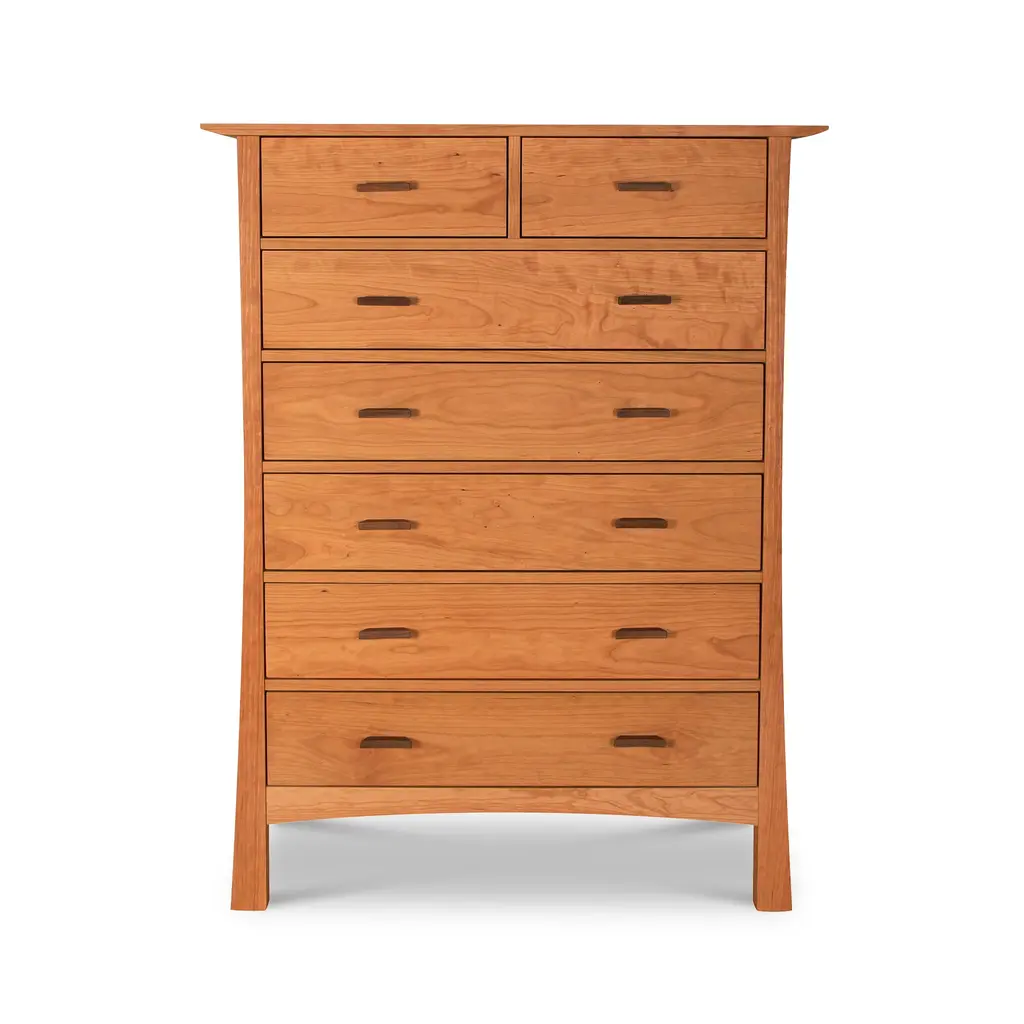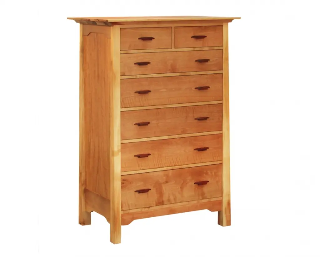 Our Contemporary Craftsman 7-Drawer Chest is from one of our most popular collections. It features a unique, clean, Arts and Crafts styling that will add a soft, understated elegance to any contemporary bedroom. Your dresser is built to order in Vermont using premium solid hardwoods and a eco-friendly oil finish. Choose from natural cherry, maple, or walnut woods. Walnut drawer pulls are standard.Base price represents dresser in natural cherry with natural walnut pullsShown in natural cherry with natural walnut pullsMatching furniture available in our Contemporary Craftsman Furniture Collection