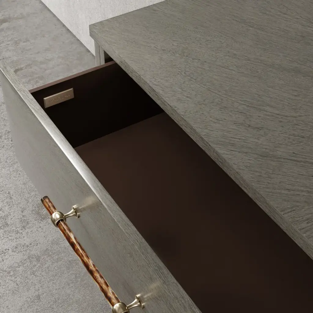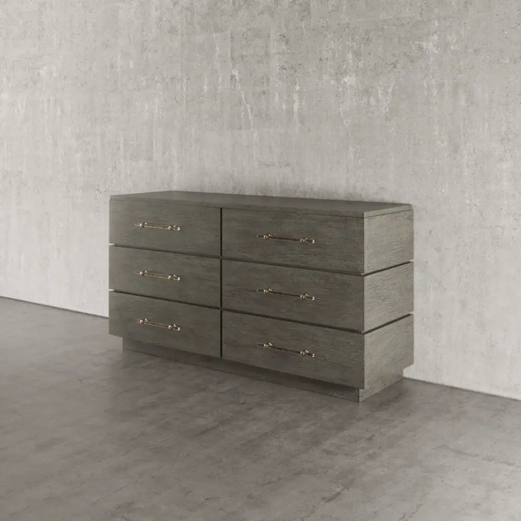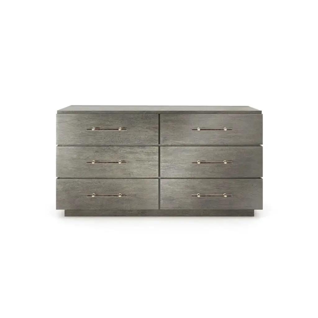 Commanding shapes softened by elliptical corners, starburst primavera veneers, and lustrous golden nickel Luce bar pull hardware to highlight the collection. As with all Casa Ispirata case pieces, our dresser features Blum drawer glides and English dovetail construction. Dressers include Blum three-quarter extension soft-close drawer glides carrying capacity.
