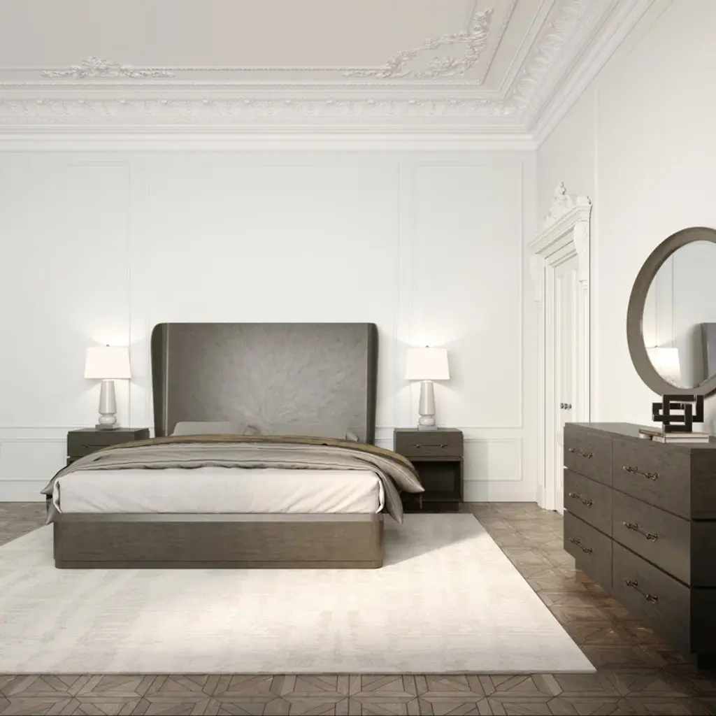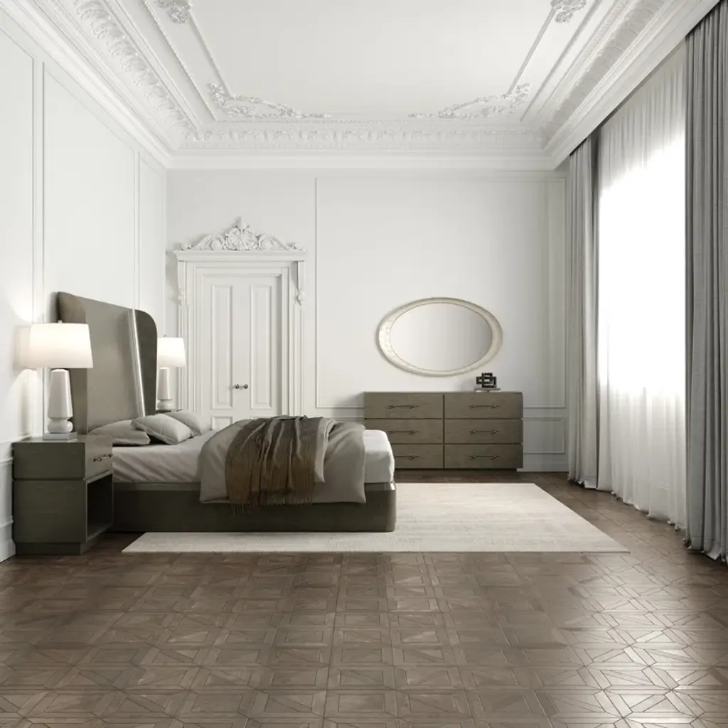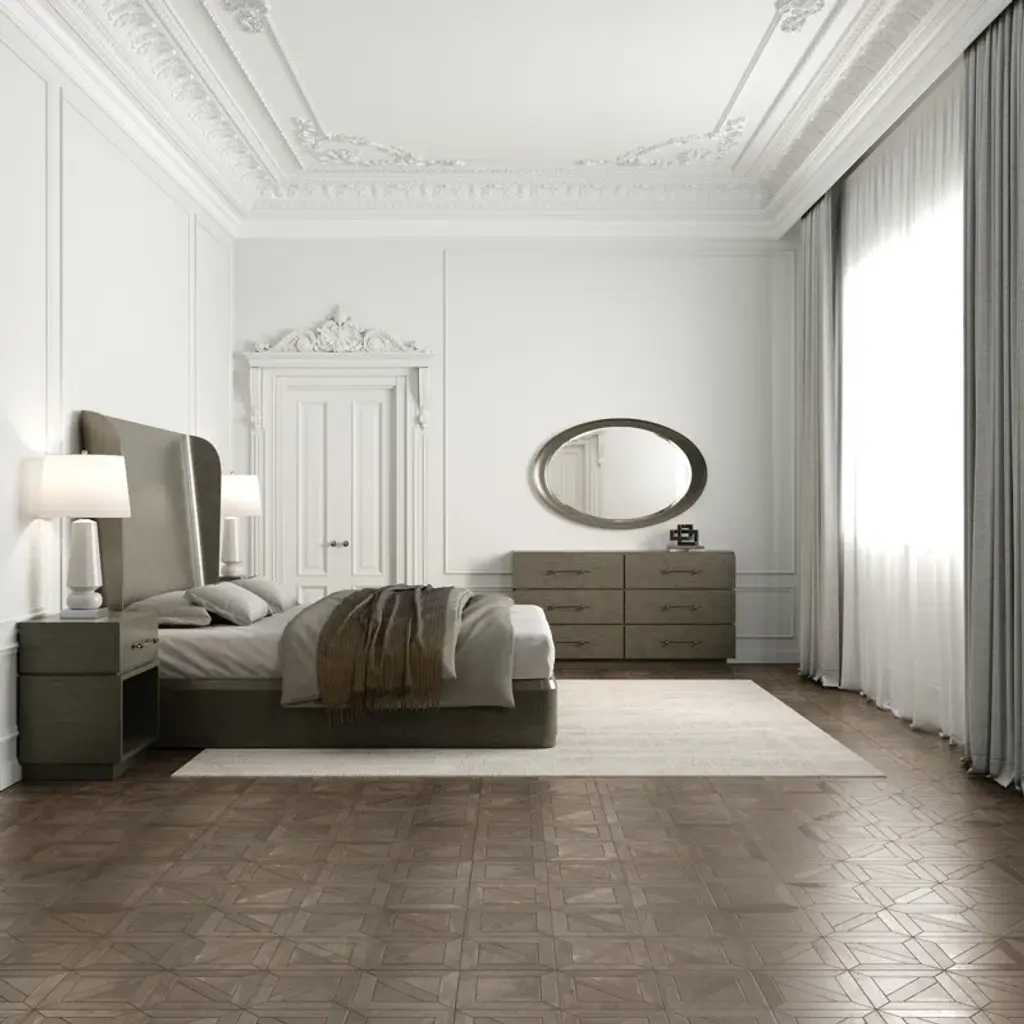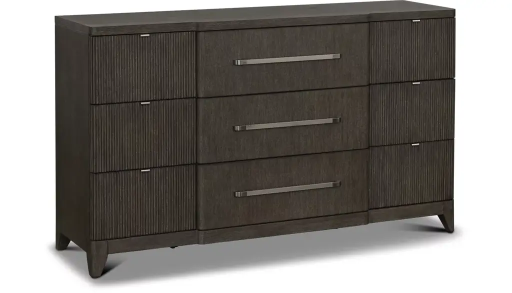 Commanding shapes softened by elliptical corners, starburst primavera veneers, and lustrous golden nickel Luce bar pull hardware to highlight the collection. As with all Casa Ispirata case pieces, our dresser features Blum drawer glides and English dovetail construction. Dressers include Blum three-quarter extension soft-close drawer glides carrying capacity.
