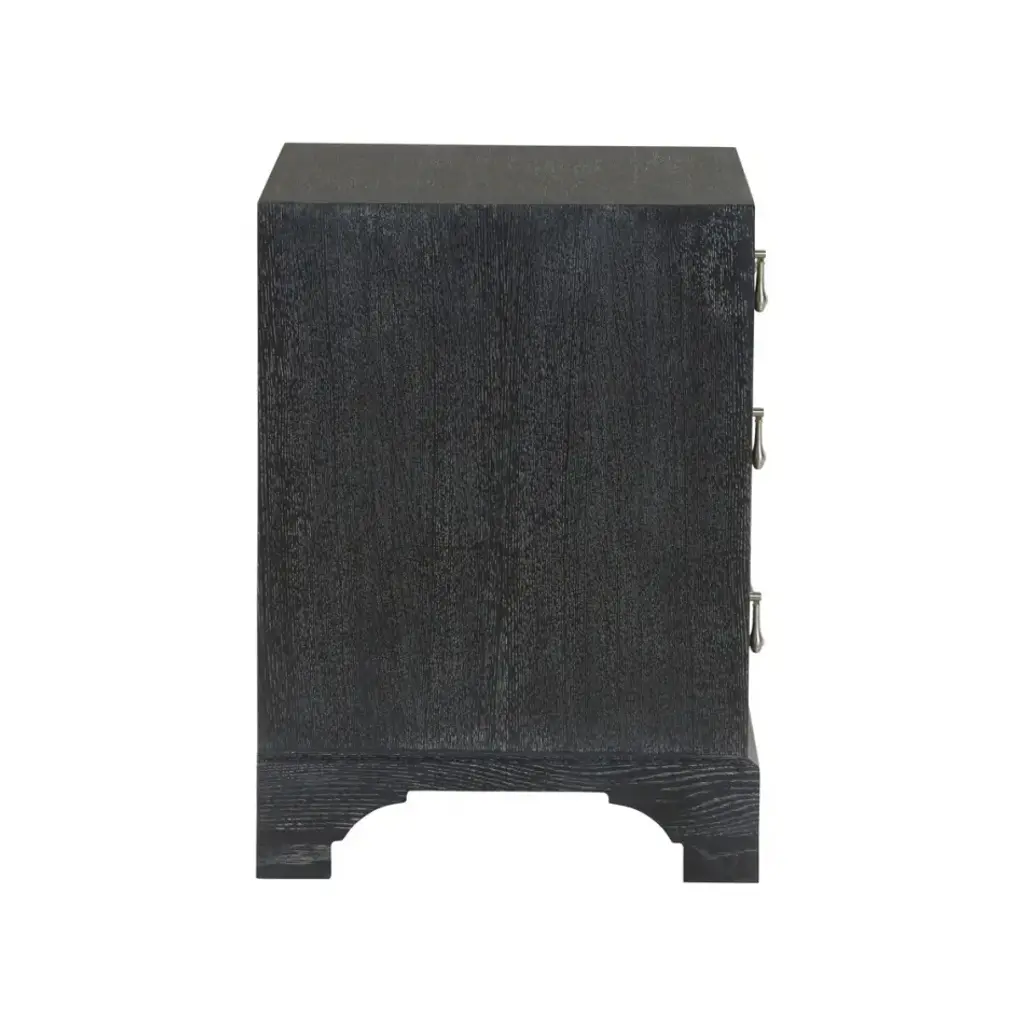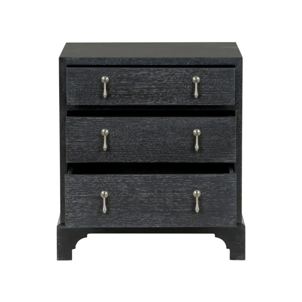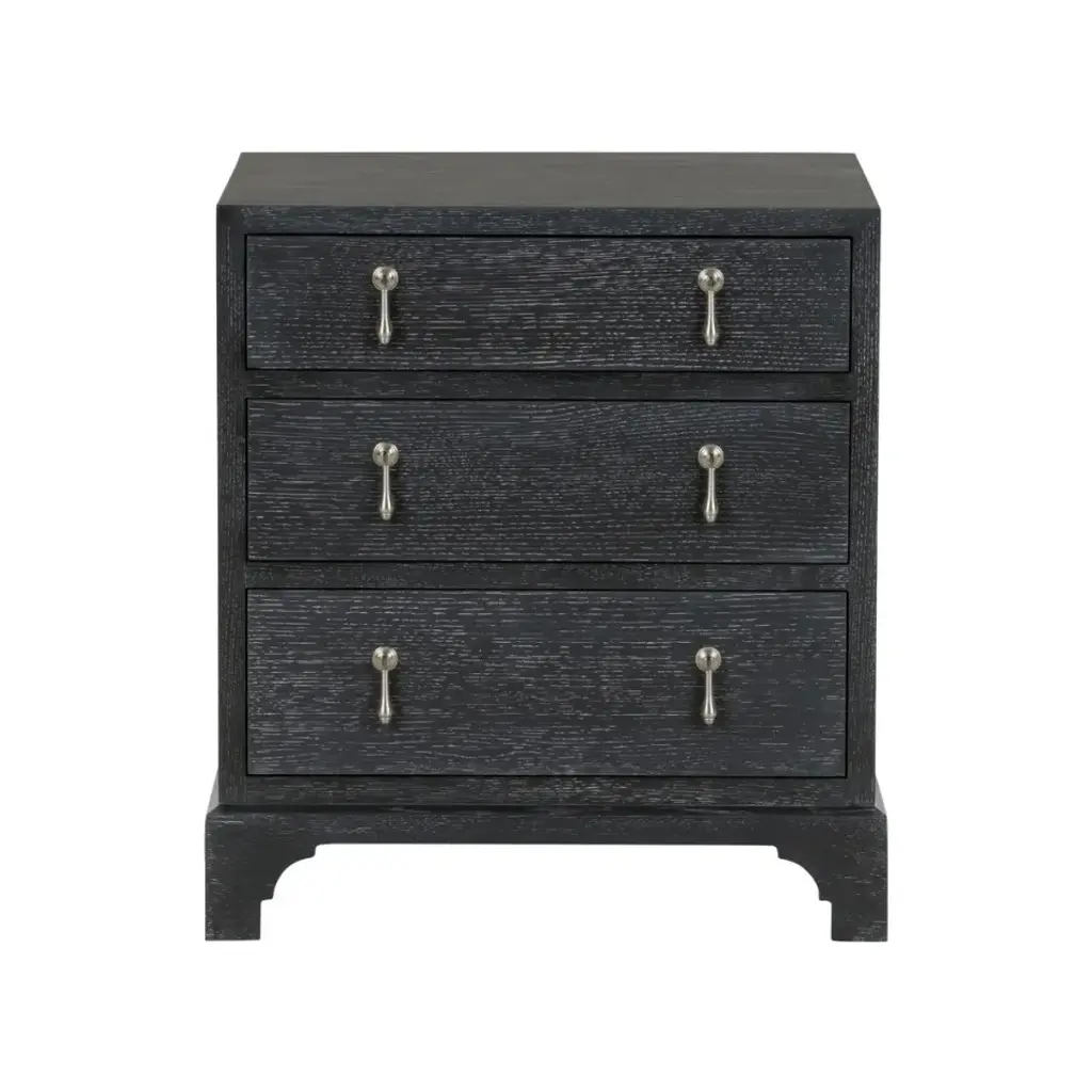 Based on an original from the South Carolina Low Country. Made fresh and update date in a natural Cerused Oak and black Cerused Oak with nickel drop pulls. Designed by Jamie Merida.