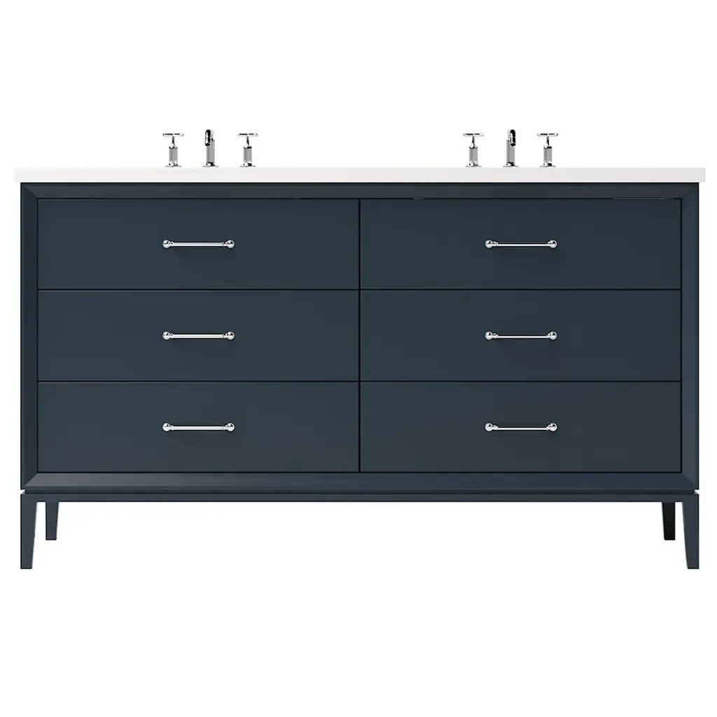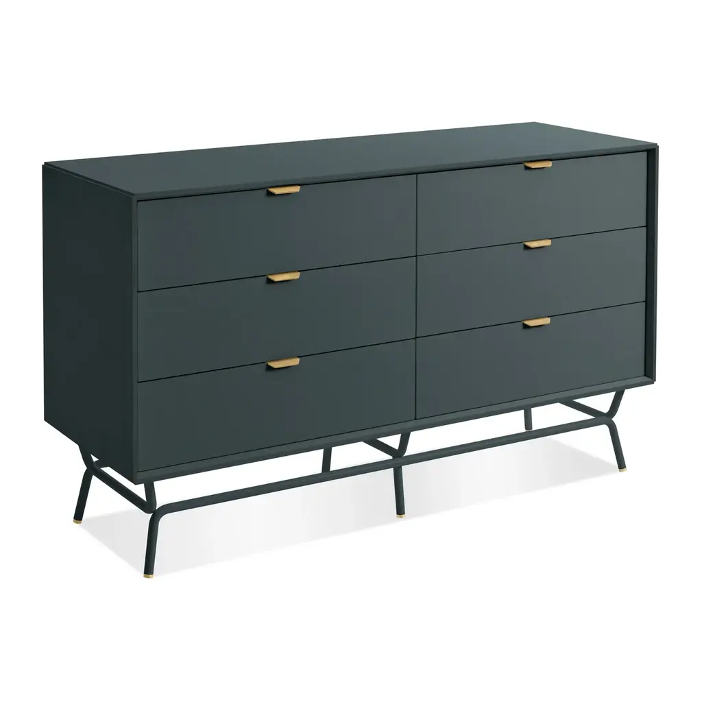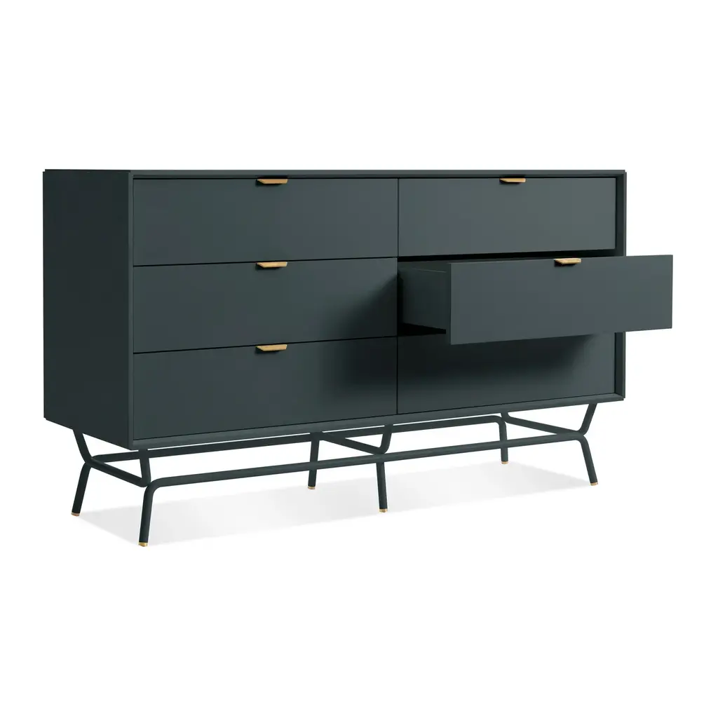 Give simple a lift. A powder-coated steel base props up a refined, unassuming silhouette. Antique brass pulls keep it pretty. Soft-close drawers keep it quiet. Available in a bevy of sizes to stylishly store your unmentionables and mentionables. All worth mentioning.