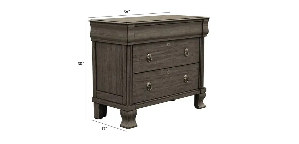 Handcrafted in our American workshops. The handsome Daryn chest is designed to have presence and function. The top ogee-shaped drawer is unadorned and opens with a finger groove. Two additional drawers have decorative ring-pull hardware. It’s a great storage piece.
