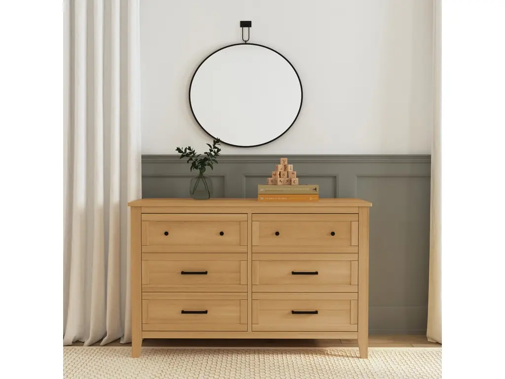 Keep your baby's essentials organized and easily accessible with the Beau 6-Drawer Dresser. Add a touch of elegance to your baby's nursery with features such as a rustic finish and clean lines for a classic and timeless look. Combine it with the Beau 3-in-1 Convertible Crib to create a cohesive and stylish nursery that you and your baby will love