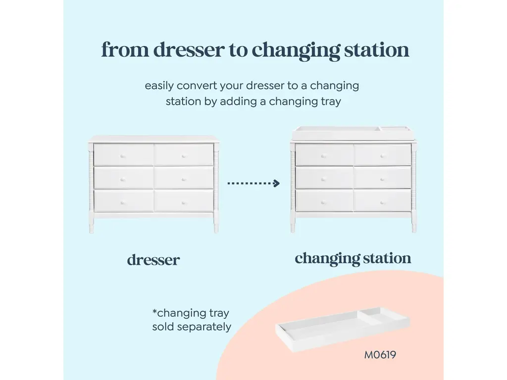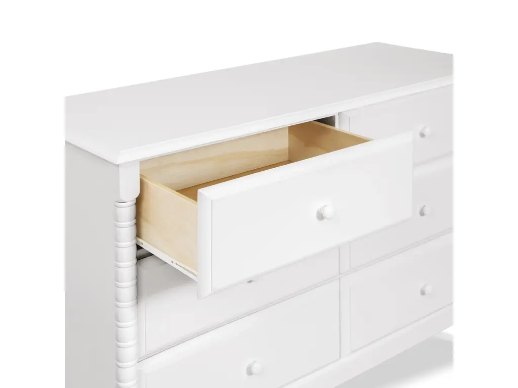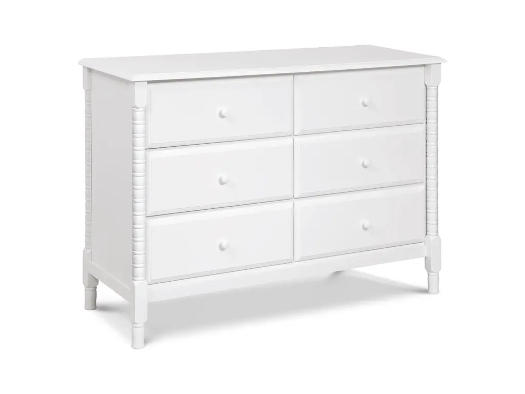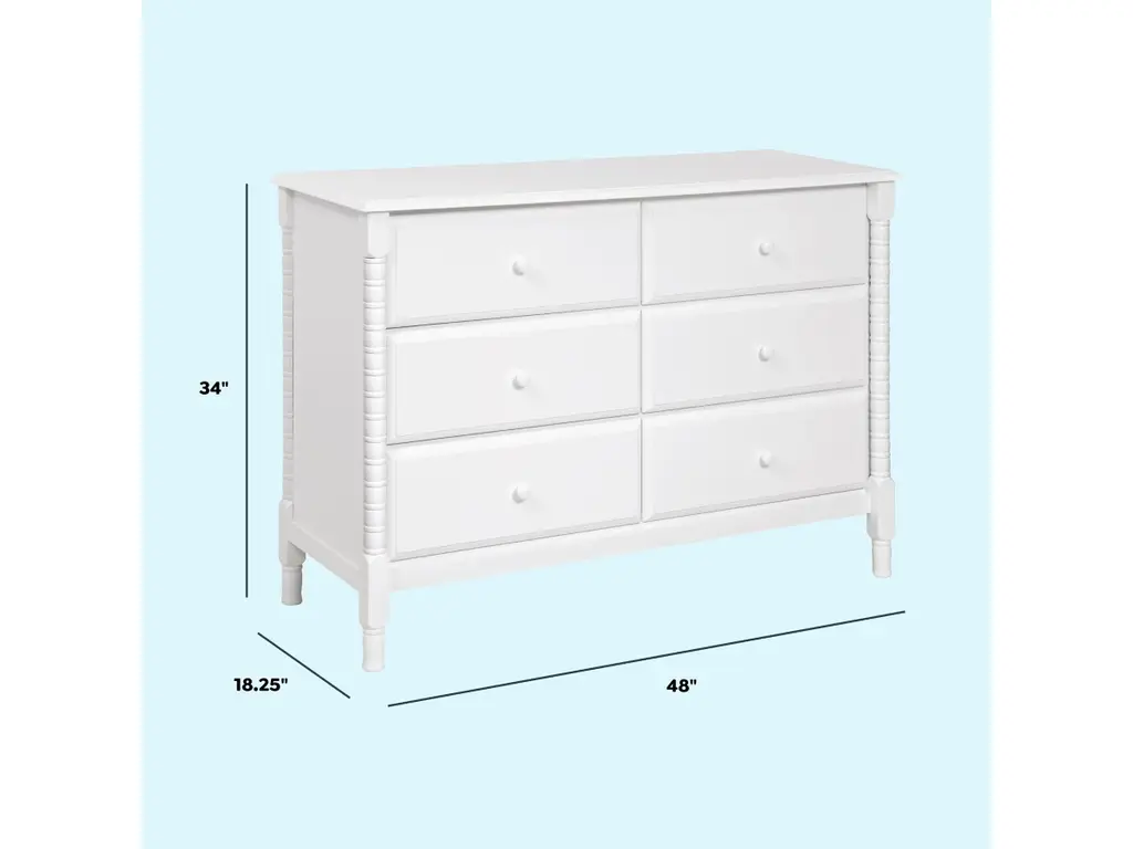 The newly designed Jenny Lind Spindle 6-Drawer Dresser is a timeless piece that complements the vintage charm of any Jenny Lind nursery or kids room. Its iconic wood spindle design gives this dresser an expressively sweet and elegant style. With 6 sturdy drawers, store all of baby's clothes and necessities within easy reach.