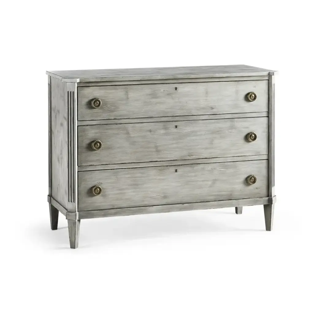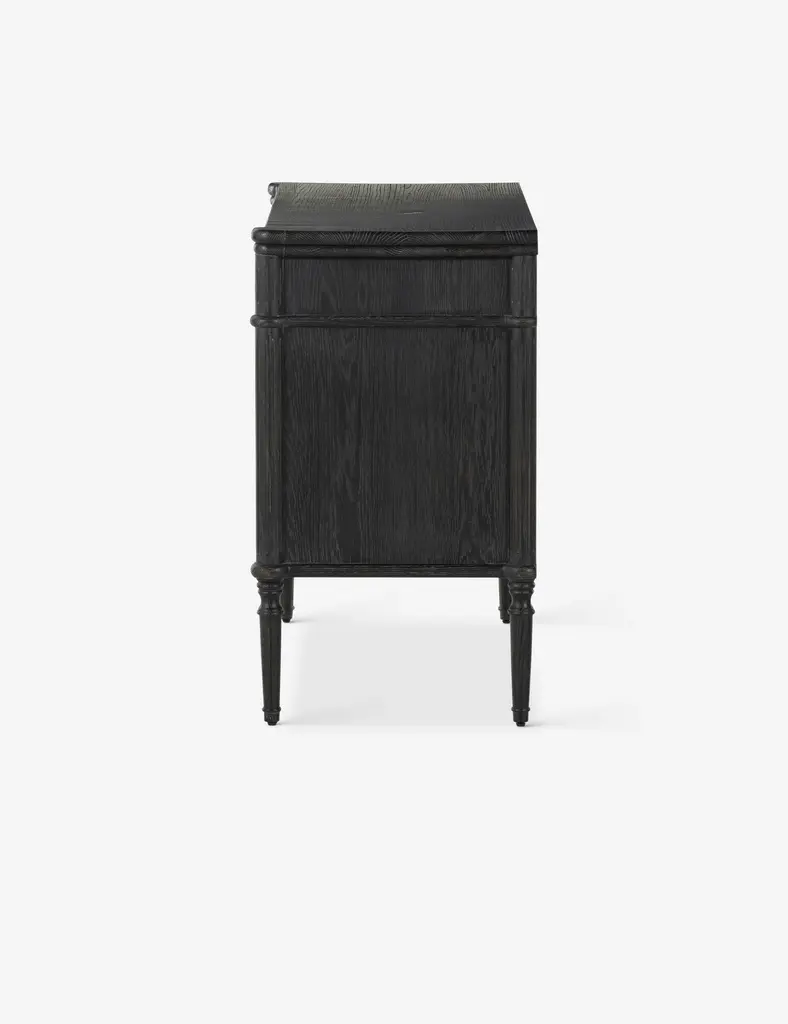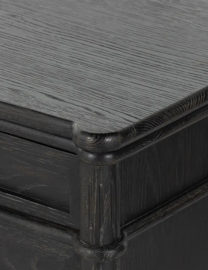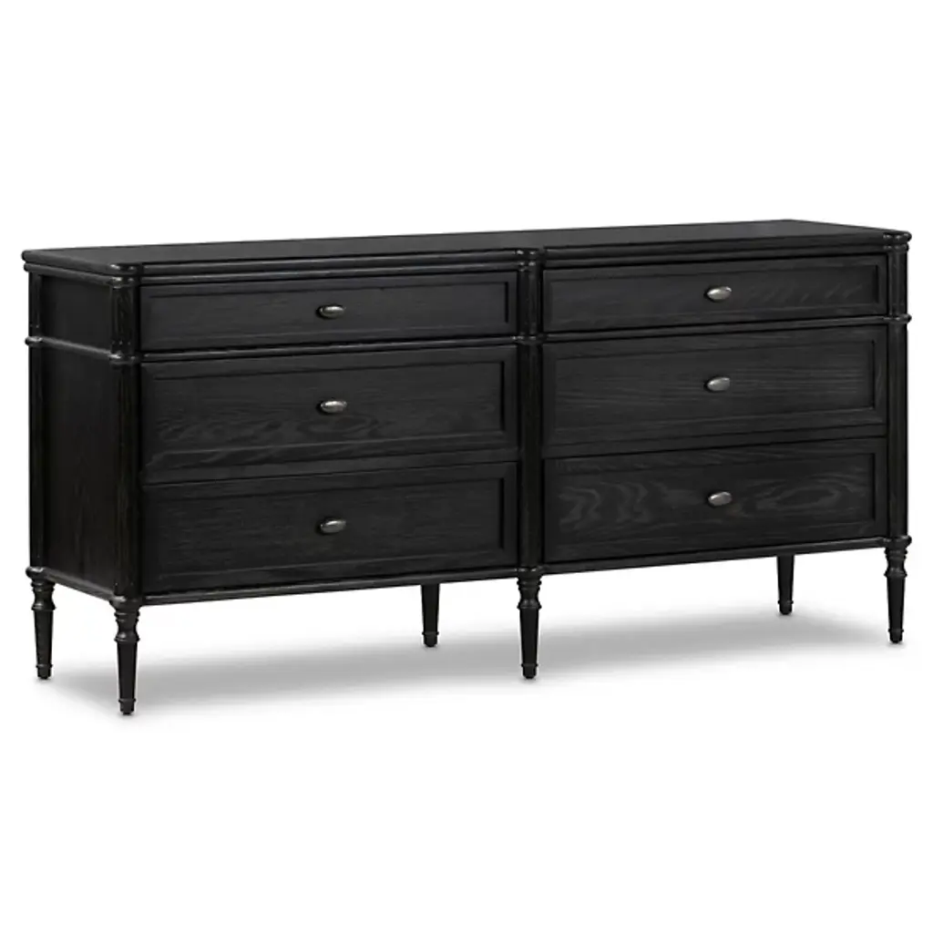 Traditional style meets modern appeal in this vintage European-inspired dresser. Turned legs and intricate detailing bring a timeless air to the oak-clad frame, with rounded pulls in antique brass to complete the look. We love the compact footprint of this 3-drawer dresser for a guest room, child's room, or small-space design.