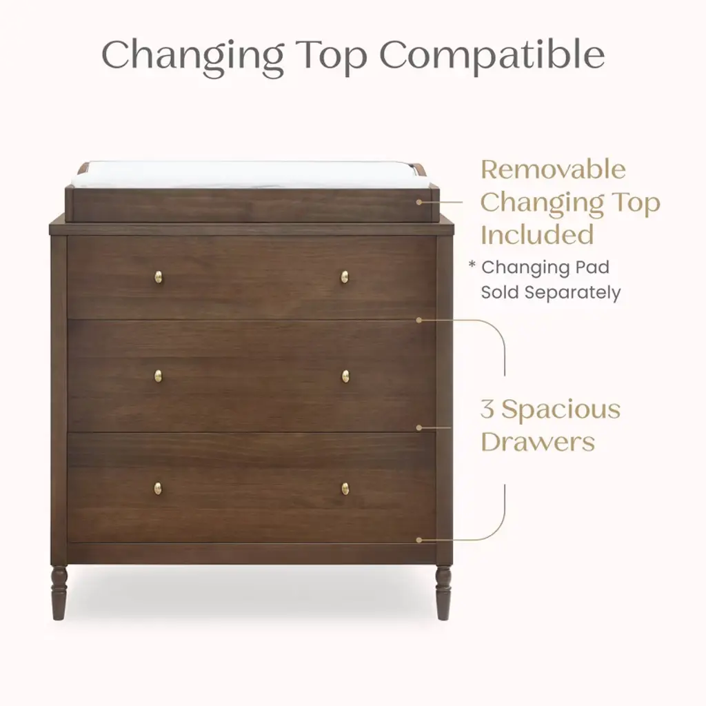 Delta Children Serena 3 Drawer Dresser With Changing Top - Teak Brown