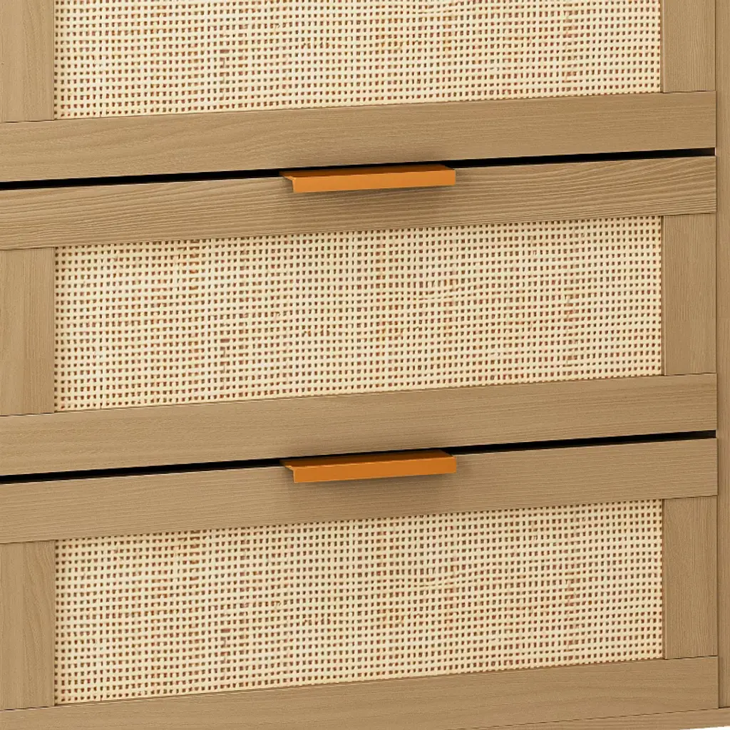 Modern natural rattan:The rattan dresser adopts simple wood color and natural rattan drawer design, providing you with a simple and spacious sorting and storage solution.