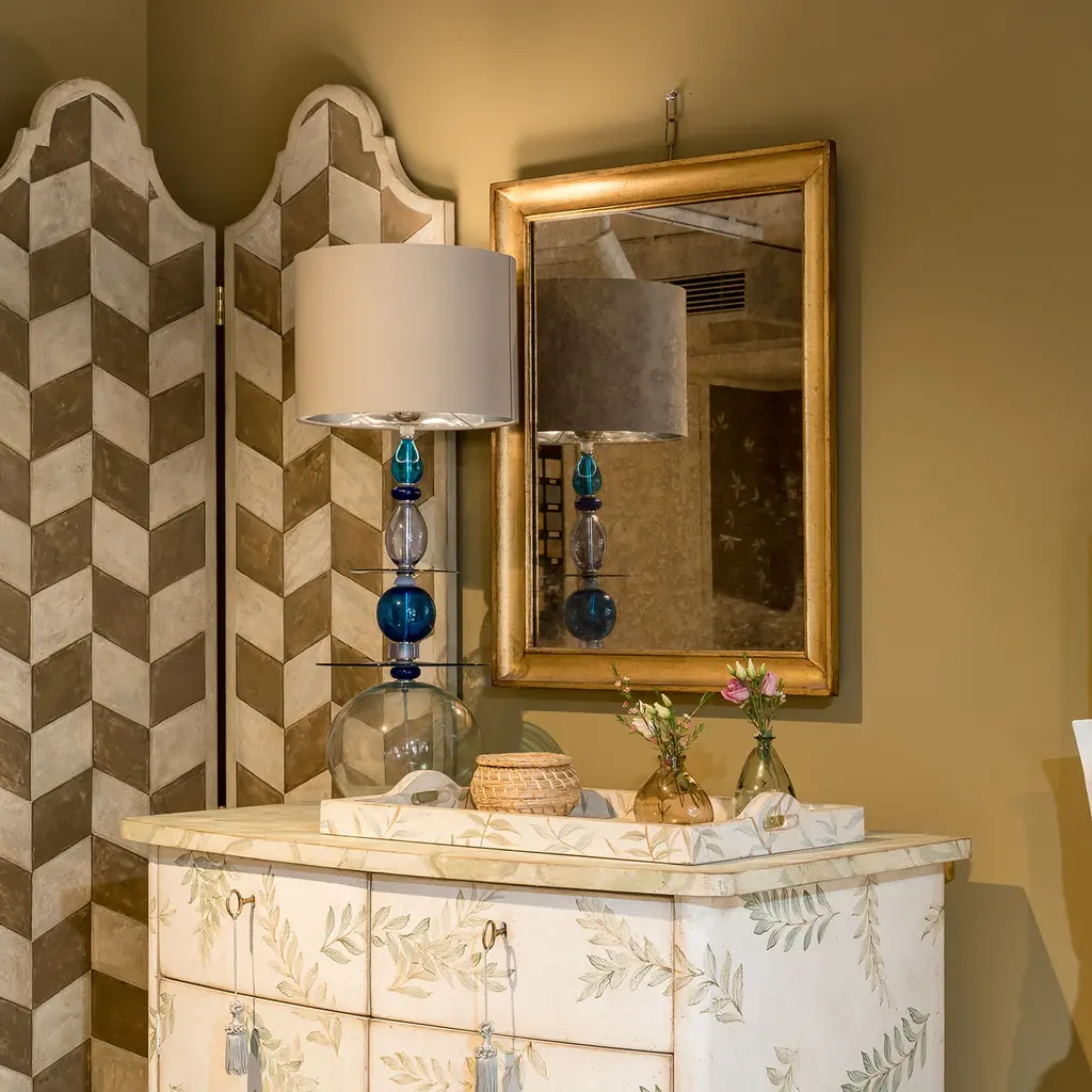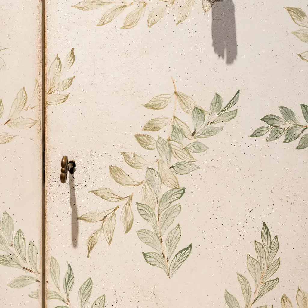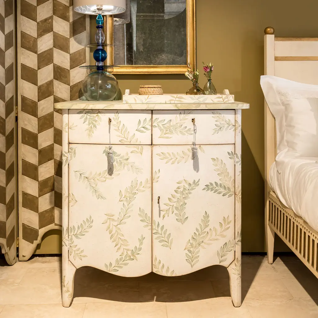 The Dorsoduro Chest of Drawers, part of the Hand-Painted Furniture Collection, is a refined expression of artisanal craftsmanship and timeless design. Finished in a soft, chalky white, it is adorned with intricate, hand-painted motifs of intertwined leaves in subtle shades of blue-gray and olive green. These delicate decorations bring a quiet elegance and organic charm, making it a versatile addition to both classic and contemporary interiors. Each unit is crafted using traditional 18th-century techniques, with every detail meticulously painted by hand, ensuring authenticity and uniqueness. Customization options are available, upon request, the surface can also be treated with a protective finish to enhance durability. Please contact the Concierge for more information.