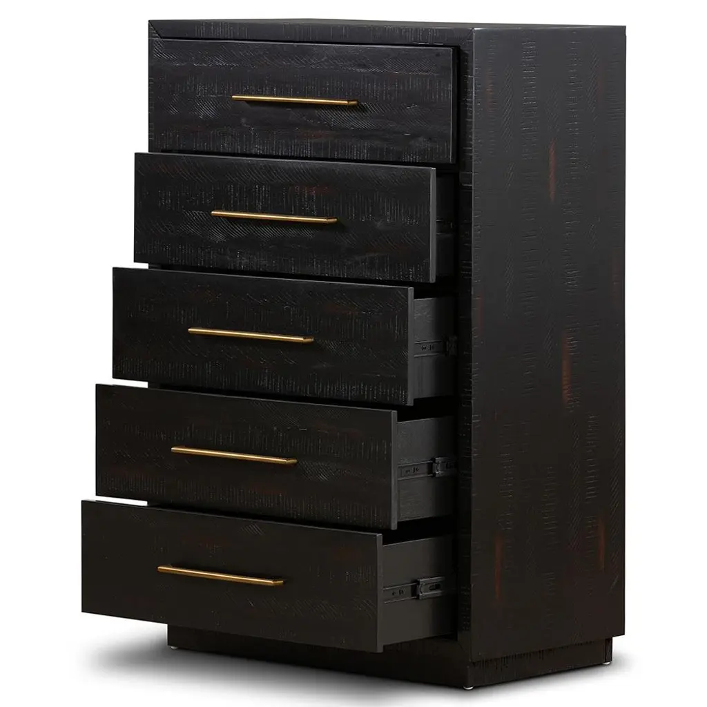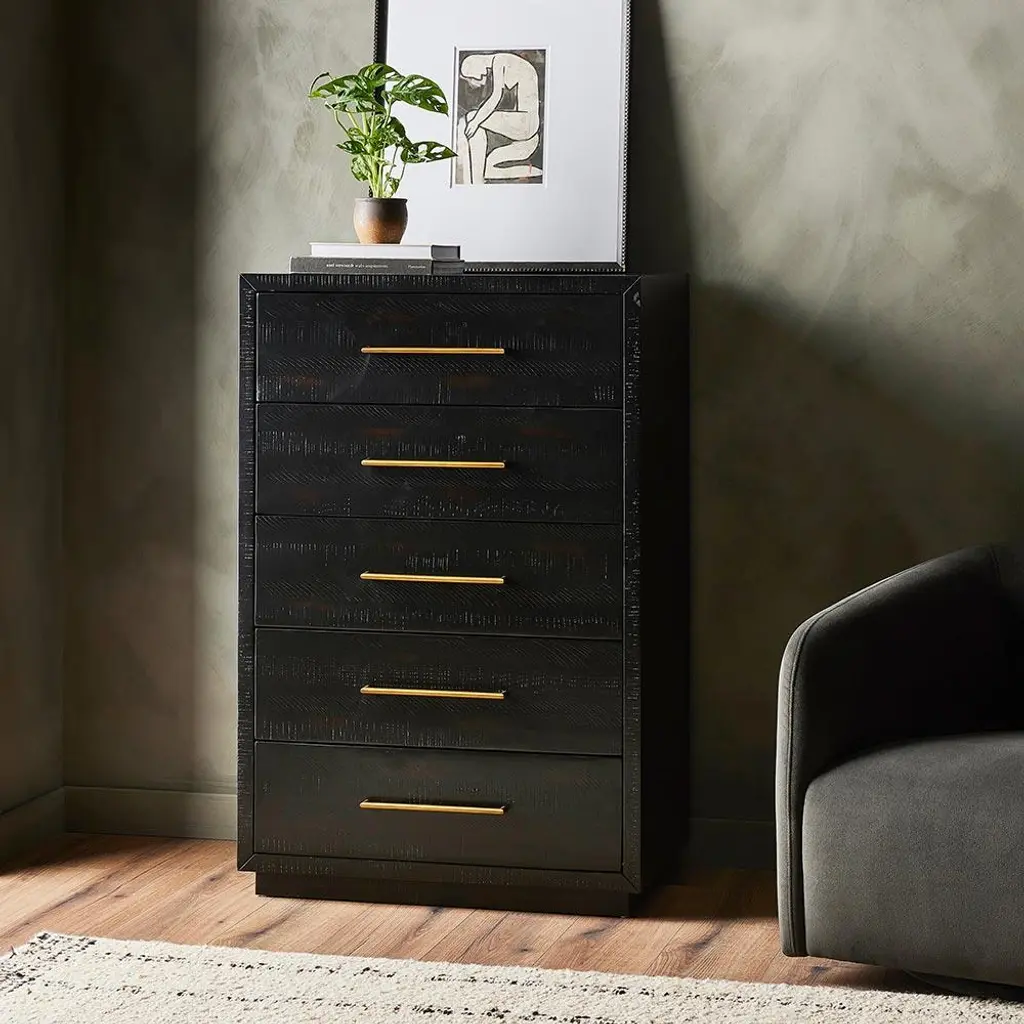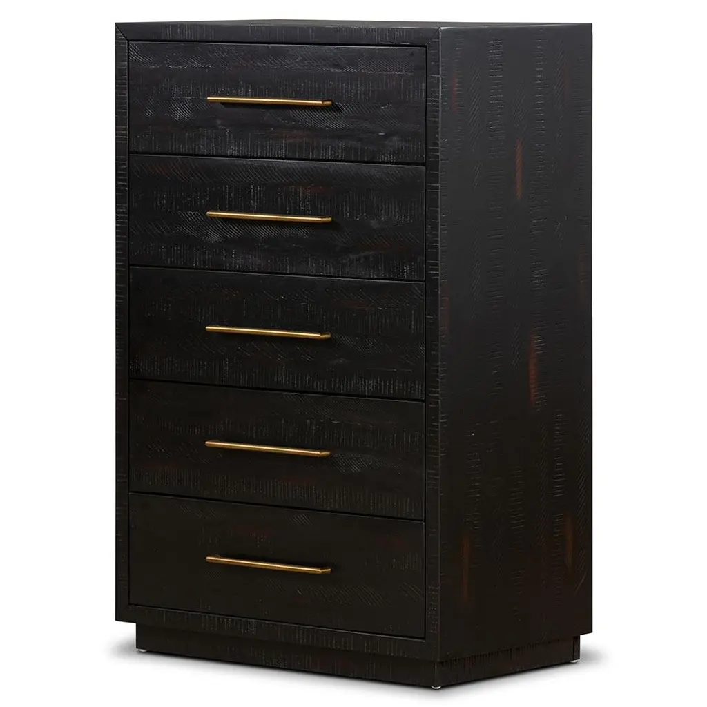 Dorwin Industrial Loft Espresso Brown Wood 5 Drawer Dresser