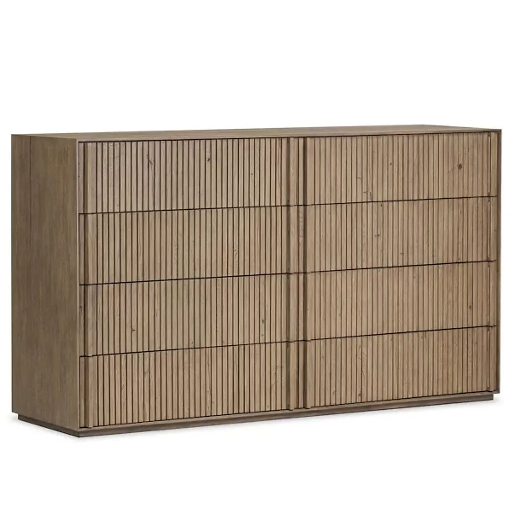 A complete and extremely elegant night group. Solid wood drops applied with extreme care to the mirror effect doors. A fine and sophisticated shaped and rounded top; a metal frame with gold-finish inserts. All this to leave nothing randomly.