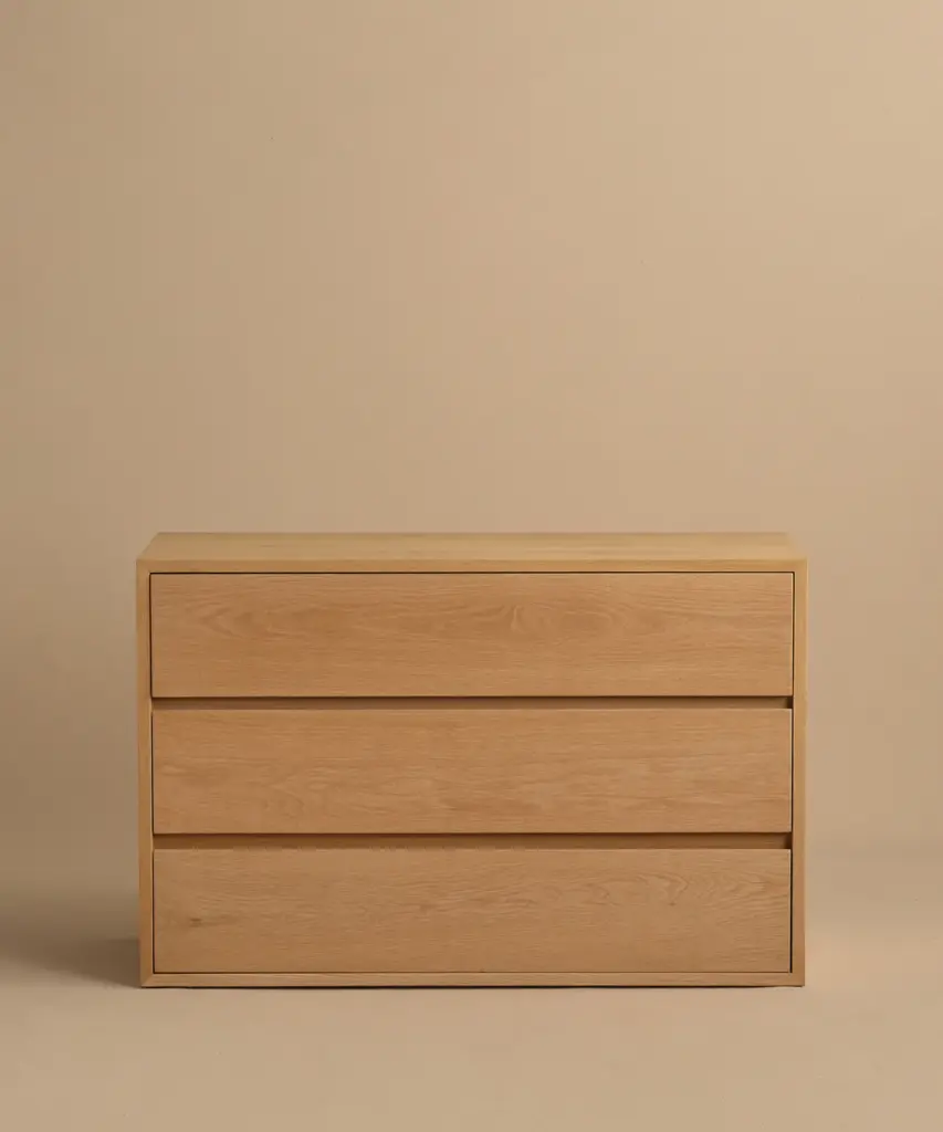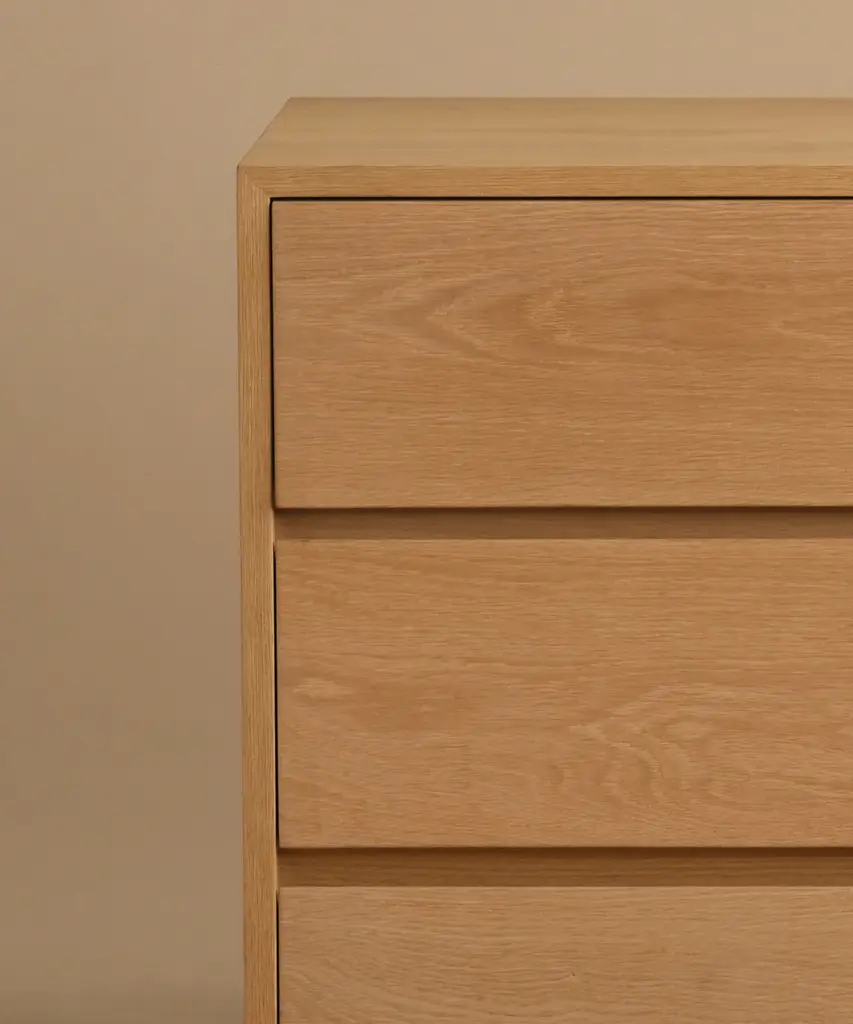 Dune Dresser Oak The Dune Dresser is destined to complete your room in an instant. Jenni Kayne Furniture is made with integrity, quality, and timeless design in mind—and built to last forever. For help styling this piece in your space, contact [email protected] for a complimentary consultation. For furniture purchases, please refer to our furniture inspection policy here. Everyday dresser fashioned from solid White Oak wood with a natural finish, and featuring soft-close gliders and dovetail drawers. Our wood pieces are minimally finished for an organic look that showcases the wood's natural grain. We view furniture as a reflection of life itself: spills may occur and natural blemishes are expected to arise over time, but each element of wear will only add to the coveted patina of the piece. Over time, you’ll find that your piece will take on a beautiful vintage look and feel that’s unmistakably unique. However, if you prefer your table to remain in pristine condition, we recommend using coasters and regularly adhering to our care instructions. Natural blemishes are expected to arise over time, but will only add to the patina and vintage look and feel of the piece. Please note that this item is final sale and is not eligible for promotions.CA Residents: Prop 65 Information