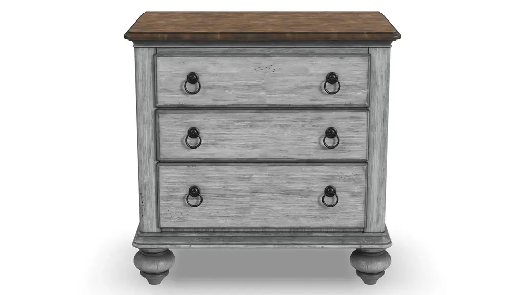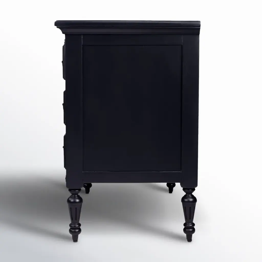 Crafted from mango wood solids in a fresh white finish with turned legs and rosette accents This stunning 4-drawer chest lends traditional antique style to an entryway, master suite, or any space needing a splash of style!