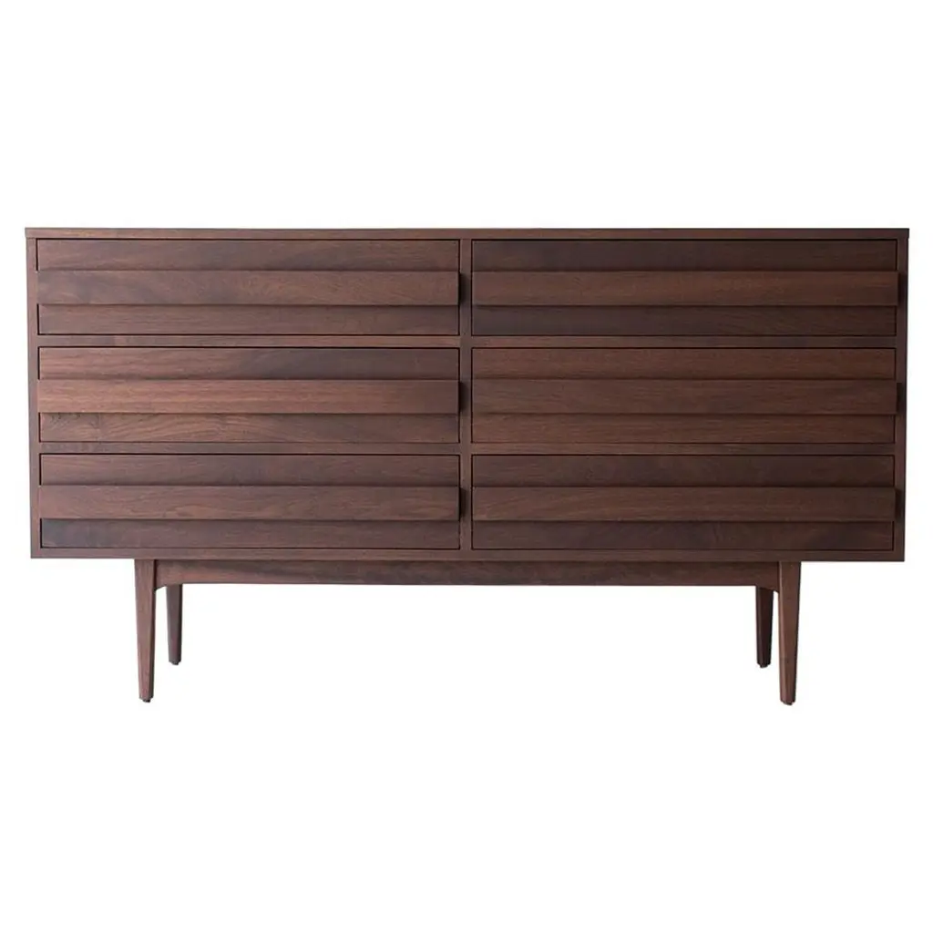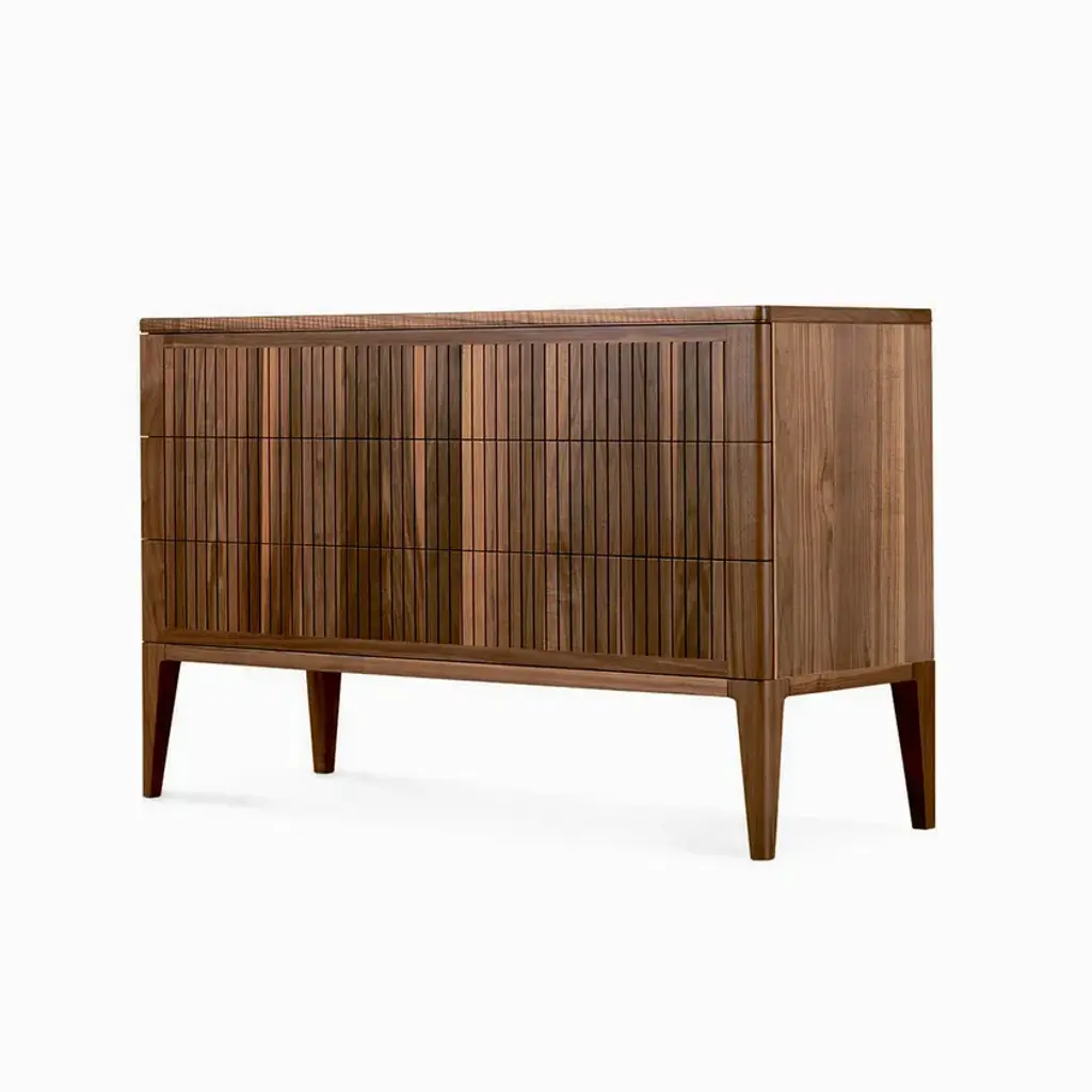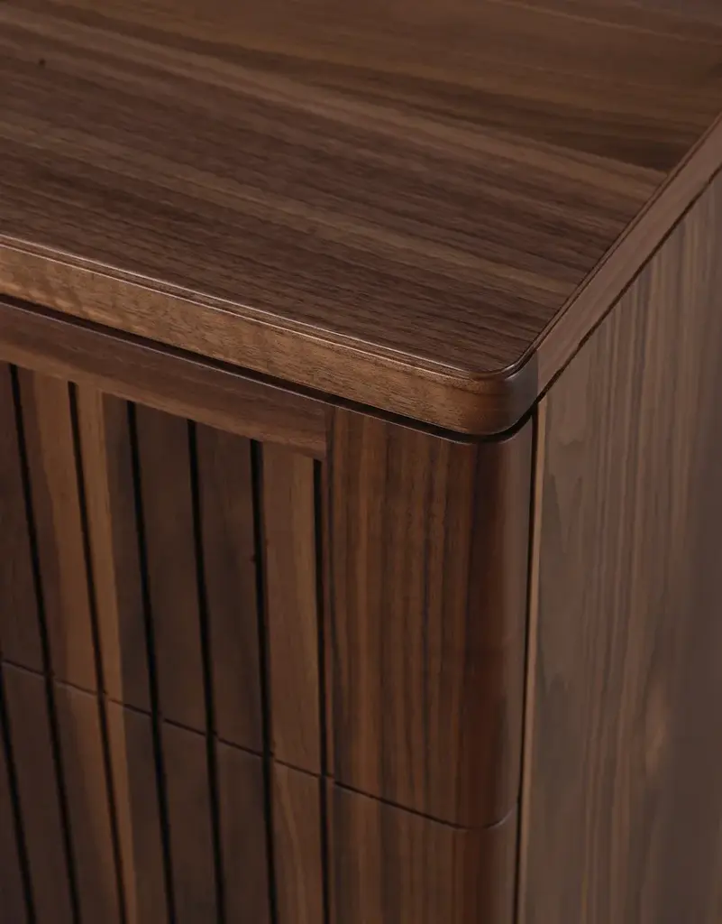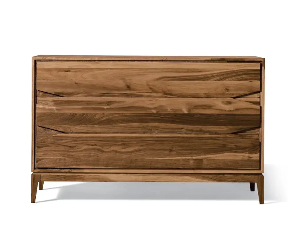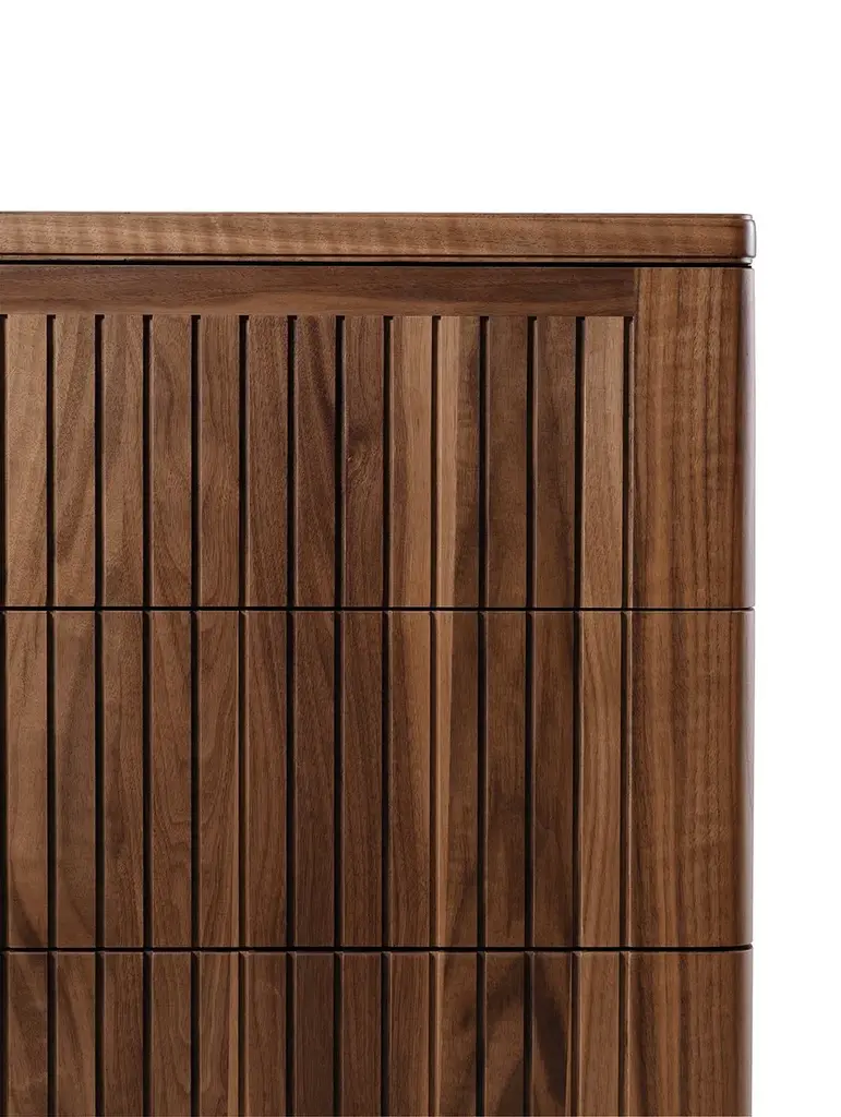 The Eleva solid wood drawer combines refined Italian design and skilled craftsmanship. The front doors, made of premium solid walnut with acrylic finish, create an intriguing contrast between light and shadow thanks to a linear style.