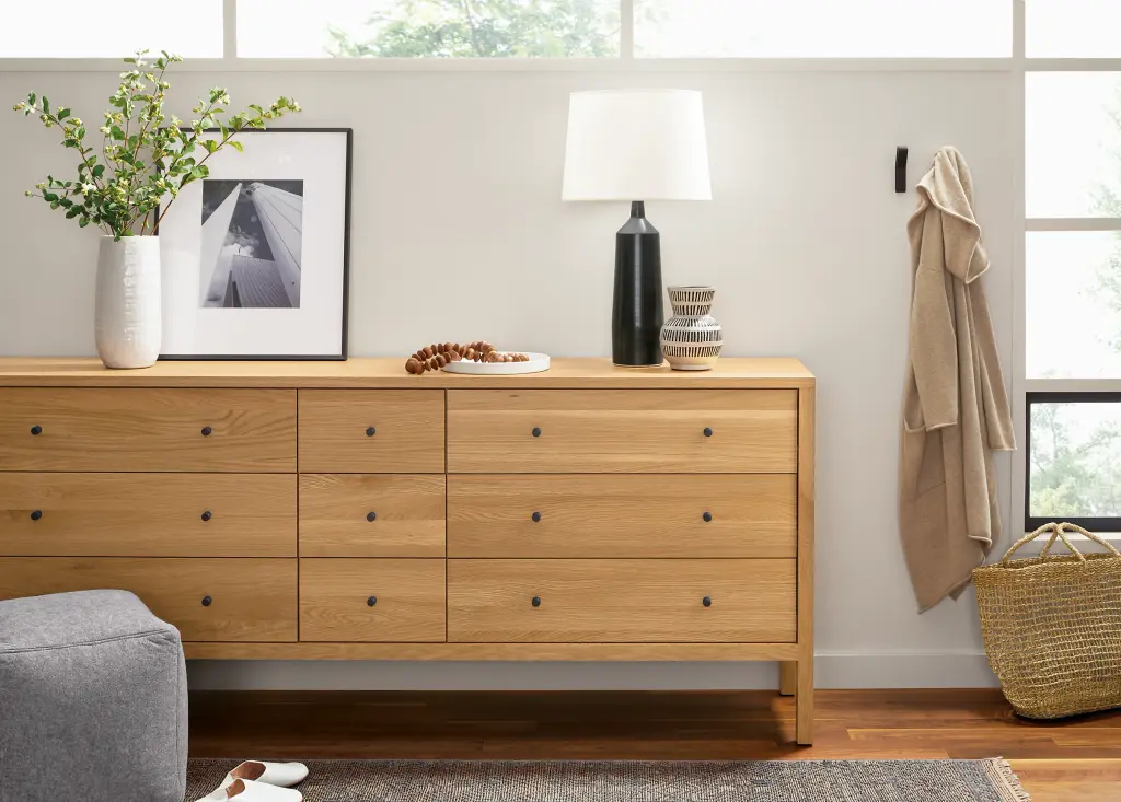 Our Emerson dresser is a fresh salute to the Shaker and Arts & Crafts design aesthetic. Expertly crafted in Wisconsin or North Carolina, this dresser has dovetail drawers and a lacquer finish that emphasizes the timeless beauty of sustainable, domestic wood. Emerson’s clean lines and sturdy construction form a classic look that will bring a friendly warmth to any bedroom.