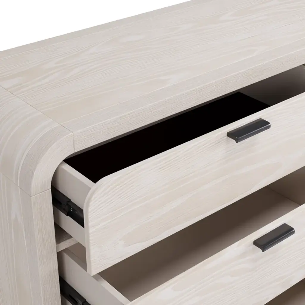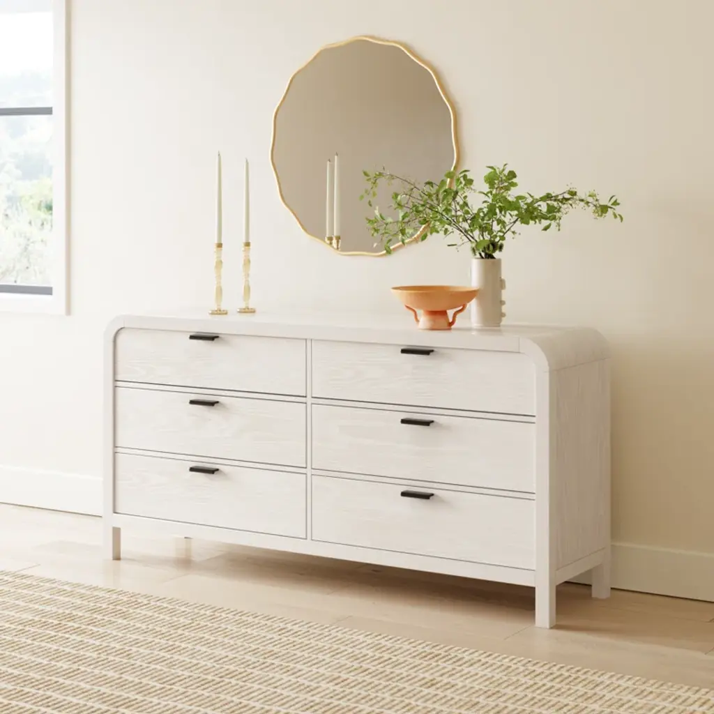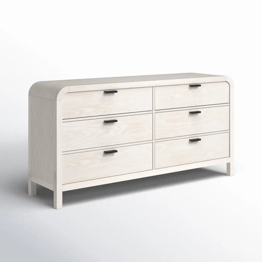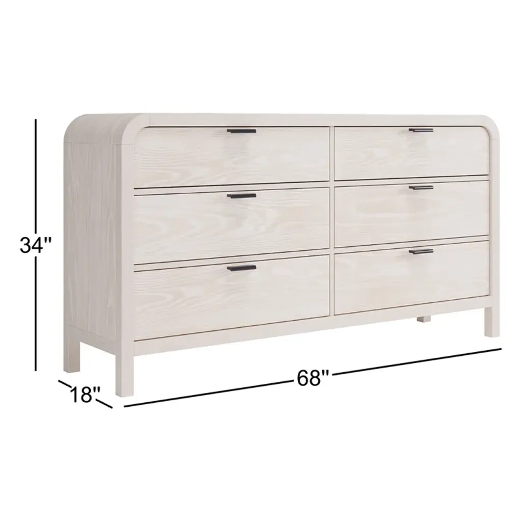 Understated and casual, this double dresser offers a clean, versatile design along with ample storage. Its off-white finish complements various styles and color schemes, while the sturdy wooden frame features rounded edges for a softer look. Six dovetailed drawers provide space for clothes and linens, and a wall anchor is included for added stability.