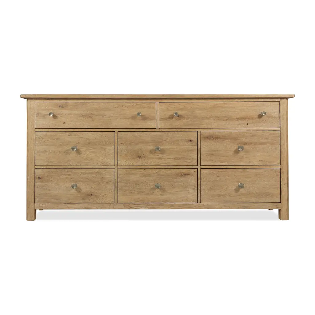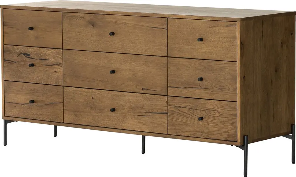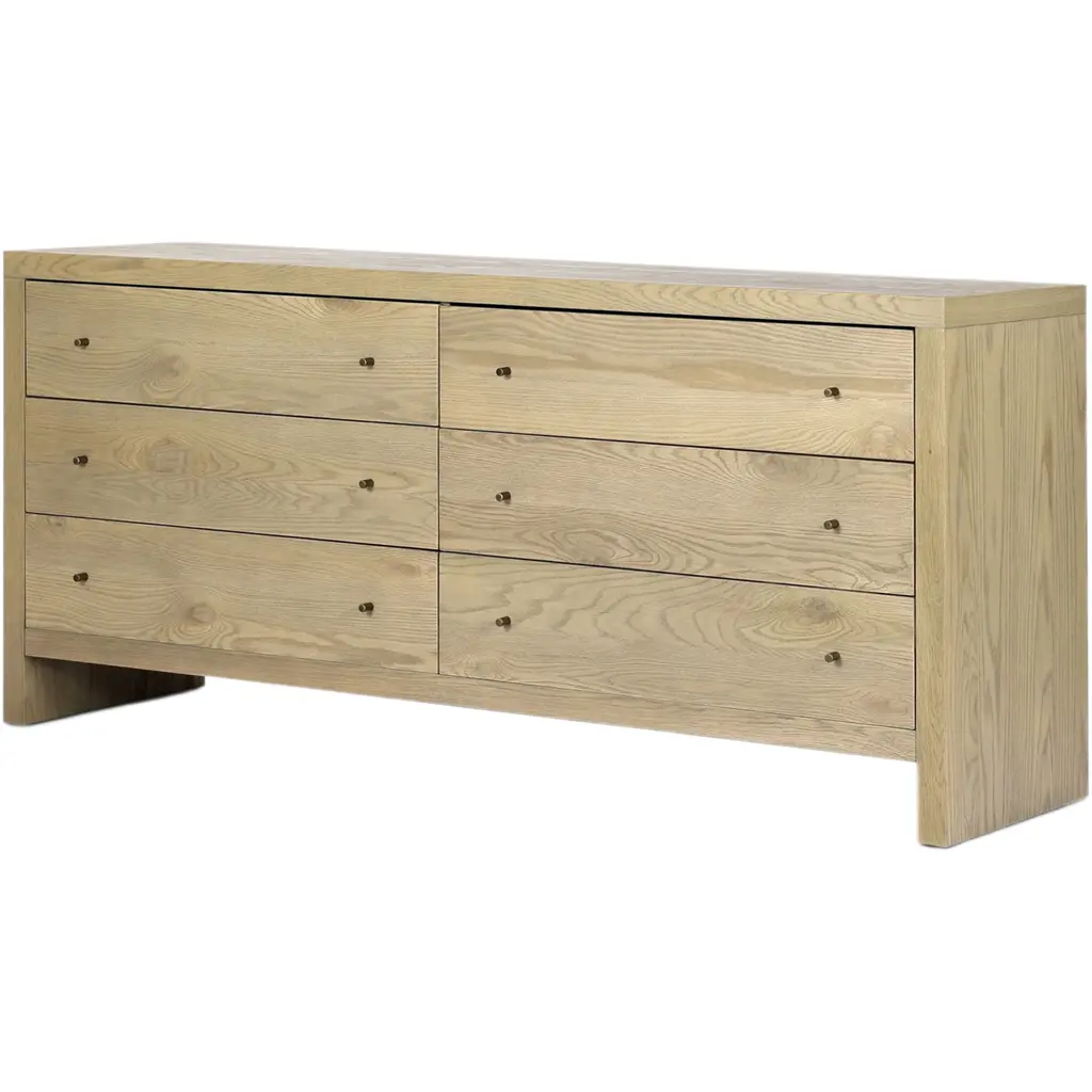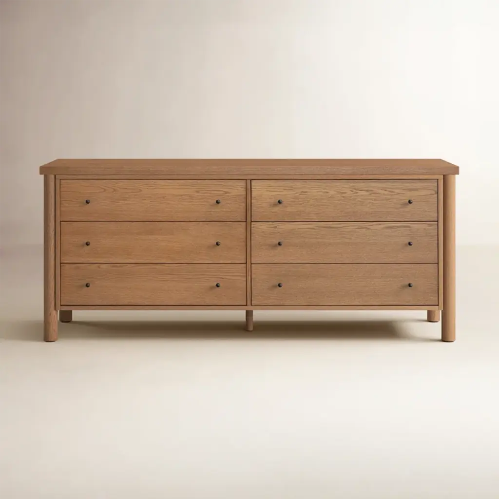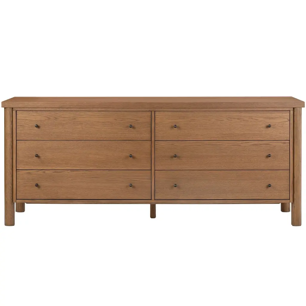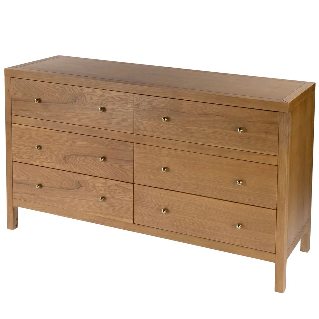 This six-drawer dresser's artisanal simplicity shows of the distinctive figuring of the oak, a hardwood prized as much for its durability as its beauty.