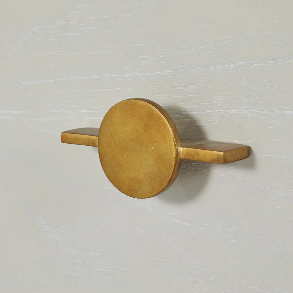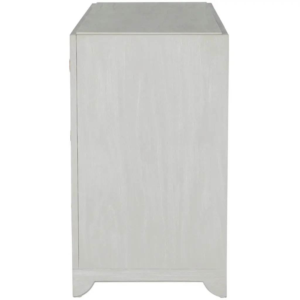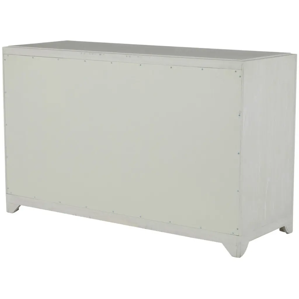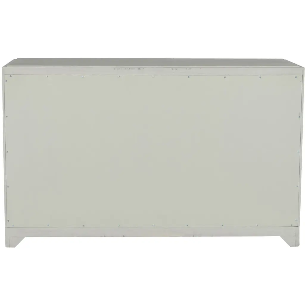 The Fairmont Dresser showcases a harmonious blend of classic design and modern functionality. With its sleek silhouette finished in a refined cerused white, this dresser brings elegance to any bedroom or living space. It features six spacious drawers, each adorned with unique circular stained gold hardware that adds a touch of sophistication. The Fairmont Dresser not only enhances your room's aesthetics but also offers ample storage for your essentials.