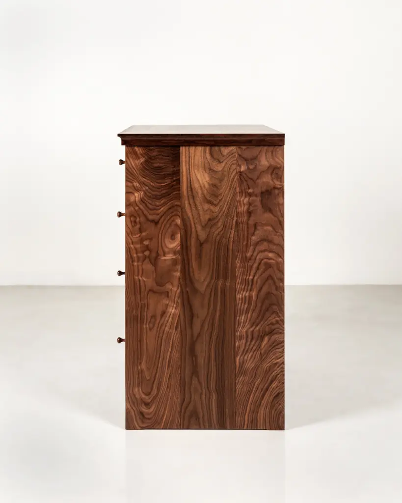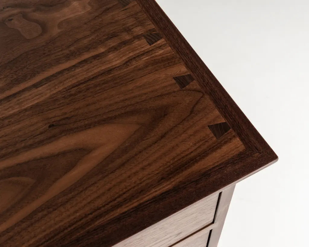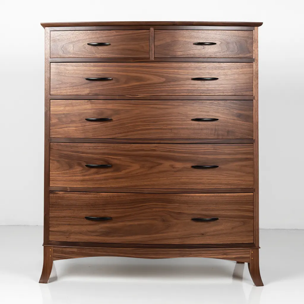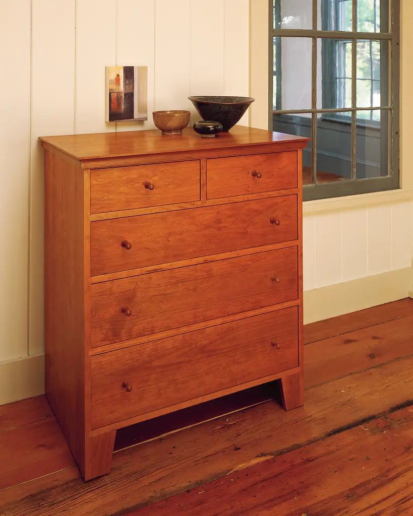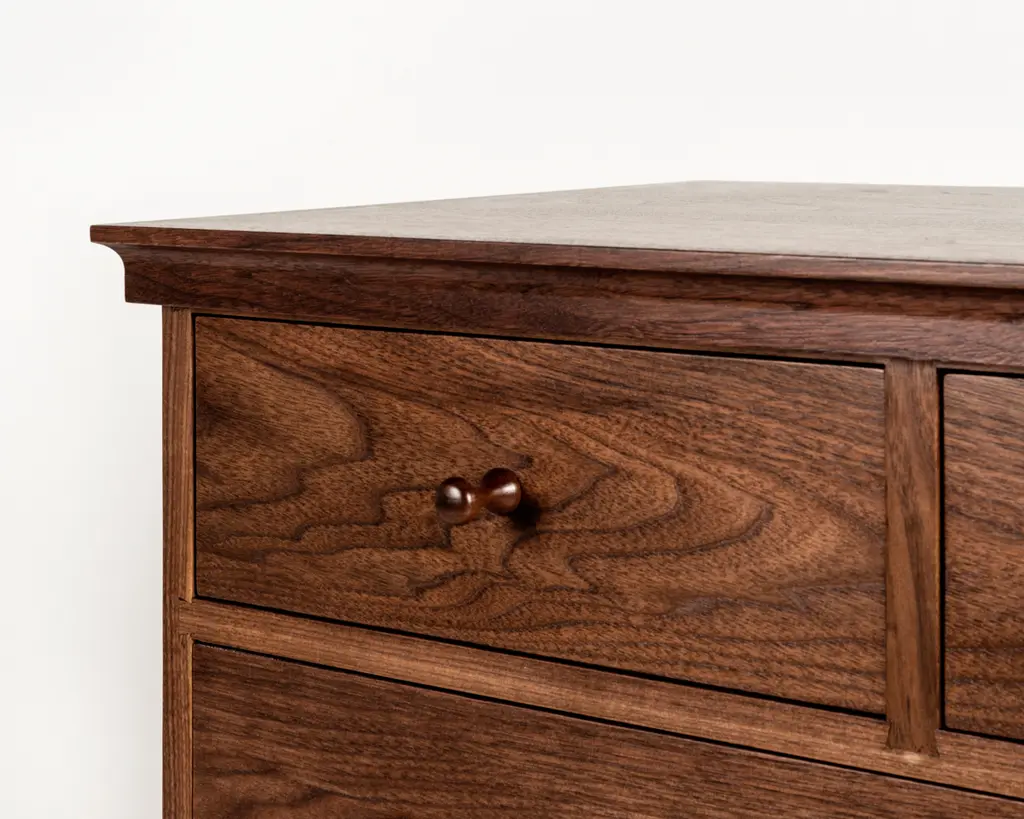 Designed in the Shaker tradition, our Five Drawer Dresser is free of ornamentation, with wood grain resplendent on its drawer faces, sides and top – and a solid wood back panel that rests in innovative expansion channels to accommodate temperature and humidity fluctuations.